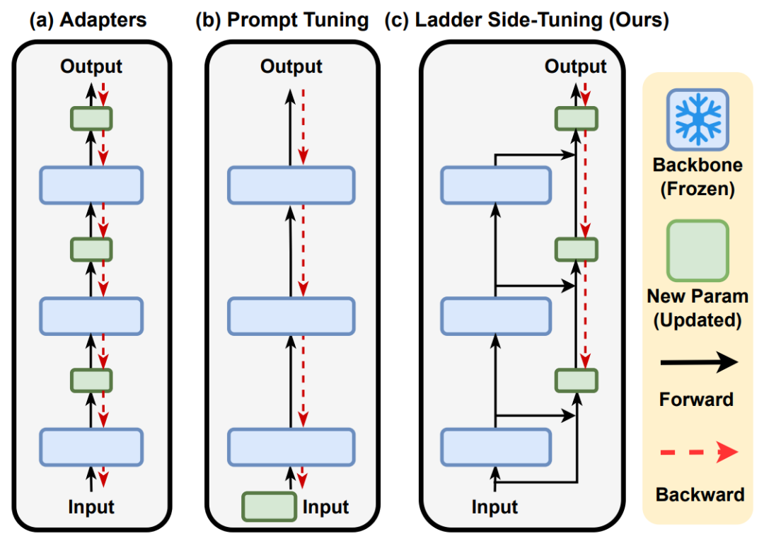 最近的一篇论文《LST: Ladder Side-Tuning for Parameter and Memory Efficient Transfer Learning》