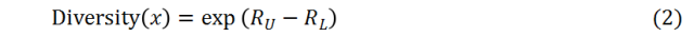 在文档已知的前提下,对于任一token,易统计出其在标注集L中出现过的文档占L中总文档数的比例与在未标注集U中出现过的文档占U中总文档数的比例,记token x的分布度Diversity为:
