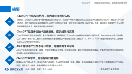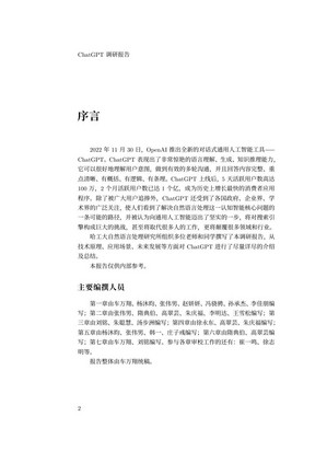 2022 年11 月30 日,OpenAI 推出全新的对话式通用人工智能工具—— ChatGPT。ChatGPT 表现出了非常惊艳的语言理解、生成、知识推理能力, 它可以很好地理解用户意图,做到有效的多轮沟通,并且回答内容完整、重 点清晰、有概括、有逻辑、有条理。ChatGPT 上线后,5 天活跃用户数高达 100 万,2 个月活跃用户数已达1 个亿,成为历史上增长最快的消费者应用 程序。除了被广大用户追捧外,ChatGPT 还受到了各国政府、企业界、学 术界的广泛关注,使人们看到了解决自然语言处理这一认知智能核心问题的 一条可能的路径,并被认为向通用人工智能迈出了坚实的一步,将对搜索引 擎构成巨大的挑战,甚至将取代很多人的工作,更将颠覆很多领域和行业。 哈工大自然语言处理研究所组织多位老师和同学撰写了本调研报告,从 技术原理、应用场景、未来发展等方面对ChatGPT 进行了尽量详尽的介绍 及总结。