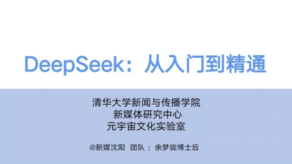 DeepSeek从入门到精通 《DeepSeek从入门到精通》是由清华大学新闻与传播学院新媒体研究中心元宇宙文化实验室的余梦珑博士后及其团队撰写。文档的核心内容围绕DeepSeek的技术特点、应用场景、使用方法以及如何通过提示语设计提升AI使用效率等方面展开,帮助用户从入门到精通DeepSeek的使用。