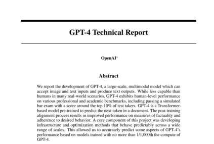 本文报告了GPT-4的发展,这是一个大规模的多模态模型,可以接受图像和文本输入并产生文本输出。虽然在许多现实世界的场景中,GPT-4的能力不如人类,但它在各种专业和学术基准上表现出了人类水平的表现,包括通过了模拟的律师考试,其分数约为考生的前10%。GPT-4是一个基于transformer的模型,预训练用于预测文档中的下一个token。训练后的校准过程会提高对事实的衡量和对期望行为的坚持程度。该项目的一个核心组件是开发基础设施和优化方法,这些方法可以在广泛的范围内预测性能。这使我们能够基于不超过GPT-4计算量的1/ 1000的训练模型准确地预测GPT-4性能的某些方面。本技术报告介绍了GPT-4,一个能够处理图像和文本输入并产生文本输出的大型多模态模型。此类模型是一个重要的研究领域,具有广泛的应用前景,如对话系统、文本摘要和机器翻译。因此,近年来,它们一直是人们感兴趣和取得进展的主题[1-28]。开发这样的模型的主要目标之一是提高它们理解和生成自然语言文本的能力,特别是在更复杂和微妙的情况下。为了测试它在这种情况下的能力,在最初为人类设计的各种考试中对GPT-4进行了评估。在这些评估中,它表现得相当好,经常超过绝大多数人类考生。例如,在模拟的律师考试中,GPT-4的分数落在了考生的前10%。这与GPT-3.5形成对比,GPT-3.5得分在最后10%。在一套传统的NLP基准测试中,GPT-4的表现优于之前的大型语言模型和大多数最先进的系统(这些系统通常有基准特定的训练或手工工程)。在MMLU基准29,30上,GPT-4不仅在英语方面以相当大的优势超过现有模型,而且在其他语言方面也表现出强大的性能。在MMLU的翻译变体上,GPT-4在考虑的26种语言中的24种超过了英语的最先进水平。我们将在后面的章节中更详细地讨论这些模型能力结果,以及模型安全性的改进和结果。本报告还讨论了该项目的一个关键挑战,即开发在大范围内表现可预测的深度学习基础设施和优化方法。这使我们能够对GPT-4的预期性能做出预测(基于以类似方式训练的小测试),并在最后的测试中进行测试,以增加我们对训练的信心。尽管GPT-4功能强大,但它与早期的GPT模型有相似的局限性[1,31,32]:它不完全可靠(例如,可能会出现“幻觉”),上下文窗口有限,并且不能从经验中学习。在使用GPT-4输出时应小心,特别是在可靠性很重要的情况下。GPT-4的能力和局限性带来了重大而新颖的安全挑战,我们认为,考虑到潜在的社会影响,仔细研究这些挑战是一个重要的研究领域。本报告包括一个广泛的系统卡(在附录之后),描述了我们预计的关于偏见、虚假信息、过度依赖、隐私、网络安全、扩散等方面的一些风险。它还描述了我们为减轻GPT-4部署带来的潜在危害而采取的干预措施,包括与领域专家进行对抗性测试,以及一个模型辅助的安全通道。本报告重点介绍了GPT-4的功能、局限性和安全性。GPT-4是[33]预训练的transformer风格的模型,可以使用公开可用的数据(如互联网数据)和第三方提供商授权的数据来预测文档中的下一个Token。然后使用来自人类反馈的强化学习(RLHF)[34]对模型进行微调。考虑到大型模型(如GPT-4)的安全影响,本报告没有包含有关架构(包括模型大小)、硬件、训练计算、数据集构造、训练方法或类似内容的进一步细节。我们致力于对我们的技术进行独立审计,并在这个版本附带的系统卡中分享了这一领域的一些初始步骤和想法我们计划向更多的第三方提供进一步的技术细节,他们可以就如何权衡上述竞争和安全考虑与进一步透明的科学价值提供建议