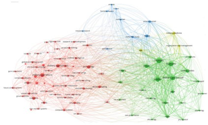 图1. 利用VOSViewer v.1.6.20生成的、突出显示与未来士兵技术相关研究的文献计量图。