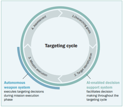 无论是AWS还是用于军事目标选定的AI-DSS,都会影响人类在目标决策中的作用。然而,一个关键区别在于它们在目标选定周期中的使用范围:AWS仅限于任务执行阶段,而AI-DSS则在多个阶段有更广泛的应用。尽管如此,这两种系统之间的区别在实践中可能模糊,具体取决于其部署方式。AWS和AI-DSS都带有意外伤害的风险,但这些风险以不同的方式显现。虽然两种系统都存在由于自主性和人工智能已知技术限制而引起的可靠性问题,但它们不同形式的人机交互可能导致不同的结果。对于在目标识别与交战之间存在直接路径的AWS,风险是直接的——例如,错误的目标识别可能导致在没有人工输入的情况下立即采取致命行动。对于向人类提供输出结果的AI-DSS,风险是间接的——如果人类基于错误的目标识别采取行动,伤害便会发生。