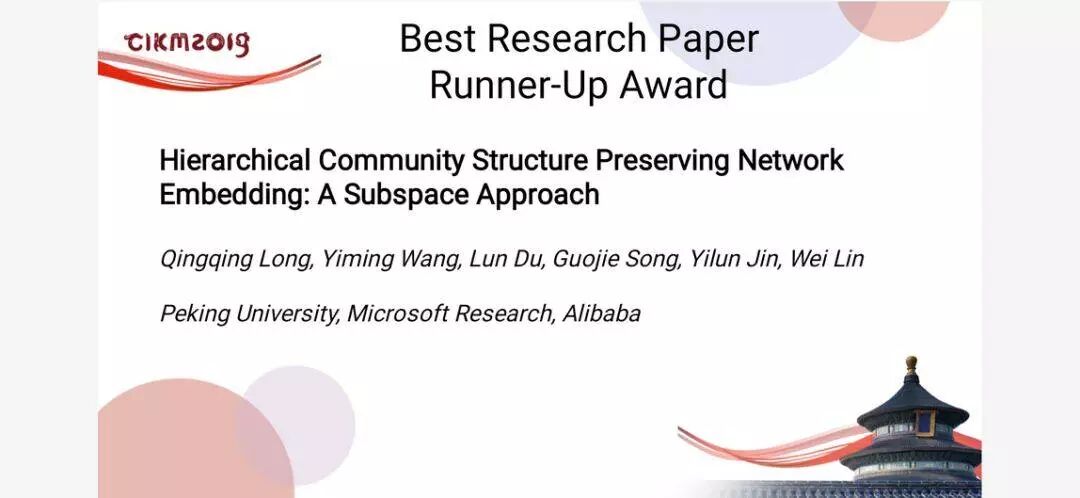 最佳研究论文第二名由北大、微软研究院和阿里巴巴的研究者获得。