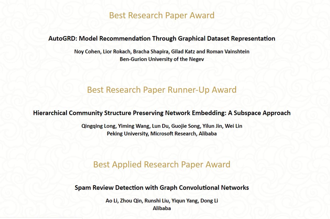 CIKM 2019 论文奖项分为三个:最佳研究论文、最佳应用论文与最佳 Demo。