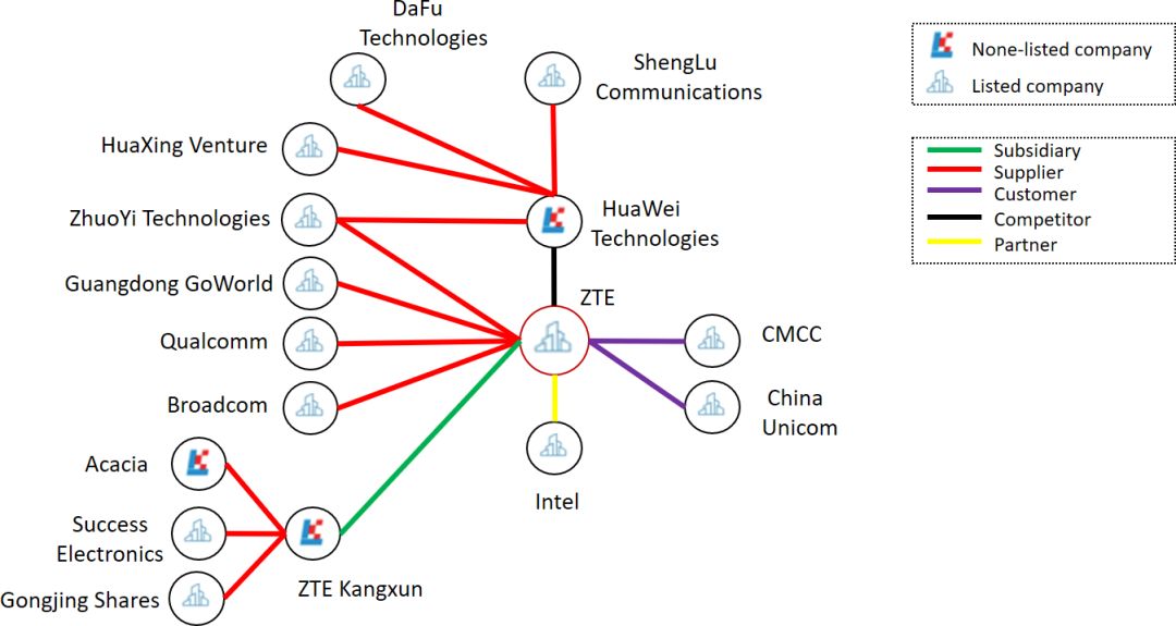 图15 与中兴通讯相关的部分知识图谱