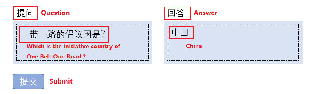 智能问答(QA)是人工智能的重要应用。它可以用准确、简洁的自然语言为用户提供问题的答案。可大大提高效率,降低人工干预成本。这种对话性的信息获取依赖于质量保证系统的准确性和可靠性。知识图谱通过提供高质量的背景知识,可以帮助提高机器人、物联网等设备的智能。如图12所示,当提交一个问题:“一带一路的倡议国是?”到支持中文知识图谱的QA系统,该系统将首先使用自然语言处理技术将问题转换为实体“一带一路”的属性为“倡议国”的属性值是什么?,然后在给定知识图谱中获得属性值“中国”,最后再把答案返回给用户。目前,许多研究人员正在研究知识库问答(KBQA)的技术(29、30)和目前在中国已经有很多的QA平台,并且已经引入了知识图谱,以确保更好的用户体验。比如百度公司的机器人“Xiaodu”,阿里巴巴公司的机器人“Xiaomi”,苹果公司的智能语音助理“Siri”和微软的机器人“Cortana”。