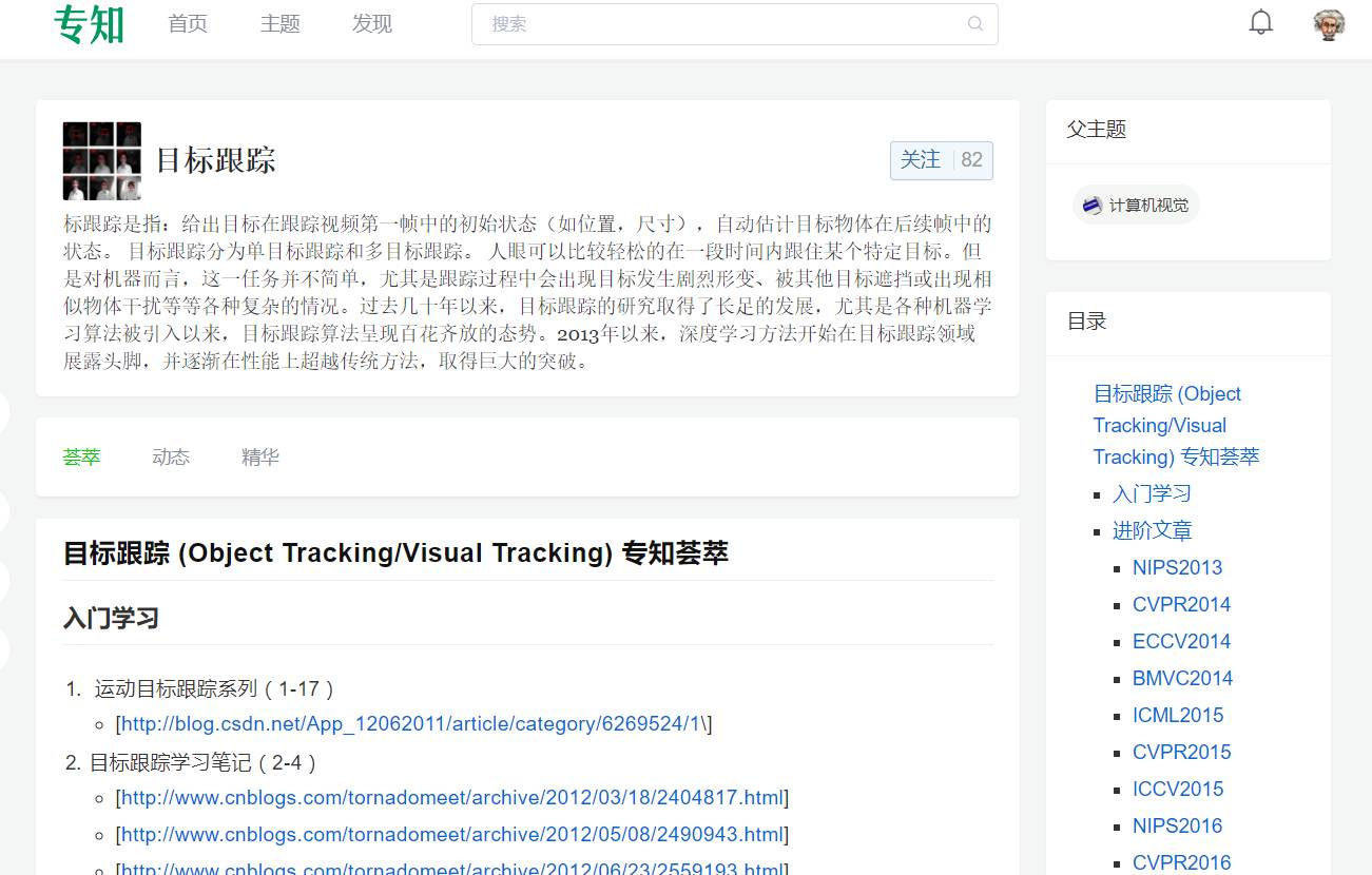 【导读】主题荟萃知识是专知的核心功能之一,为用户提供AI领域系统性的知识学习服务。主题荟萃为用户提供全网关于该主题的精华(Awesome)知识资料收录整理,使得AI从业者便捷学习和解决工作问题!在专知人工智能主题知识树基础上,主题荟萃由专业人工编辑和算法工具辅助协作完成,并保持动态更新!另外欢迎对此创作主题荟萃感兴趣的同学,请加入我们专知AI创作者计划,共创共赢! 今天专知为大家呈送第十八篇专知主题荟萃-目标跟踪知识资料大全集荟萃 (入门/进阶/综述/视频/代码/专家等),请大家查看!专知访问www.zhuanzhi.ai, 或关注微信公众号后台回复" 专知"进入专知,搜索主题“目标跟踪”查看。此外,我们也提供该文网页桌面手机端(www.zhuanzhi.ai)完整访问,可直接点击访问收录链接地址,以及pdf版下载链接,请文章末尾查看!此为初始版本,请大家指正补充,欢迎在后台留言!欢迎大家分享转发~