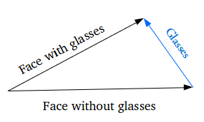 添加新的样本特征如何生成特定的特征?如在脸上生成眼镜。首先,找到两个样本,一个戴眼镜,一个没有,从编码器获得它们的编码矢量,并保存差异。 将这个新的“眼镜”矢量添加到其他脸部图像,并解码它。