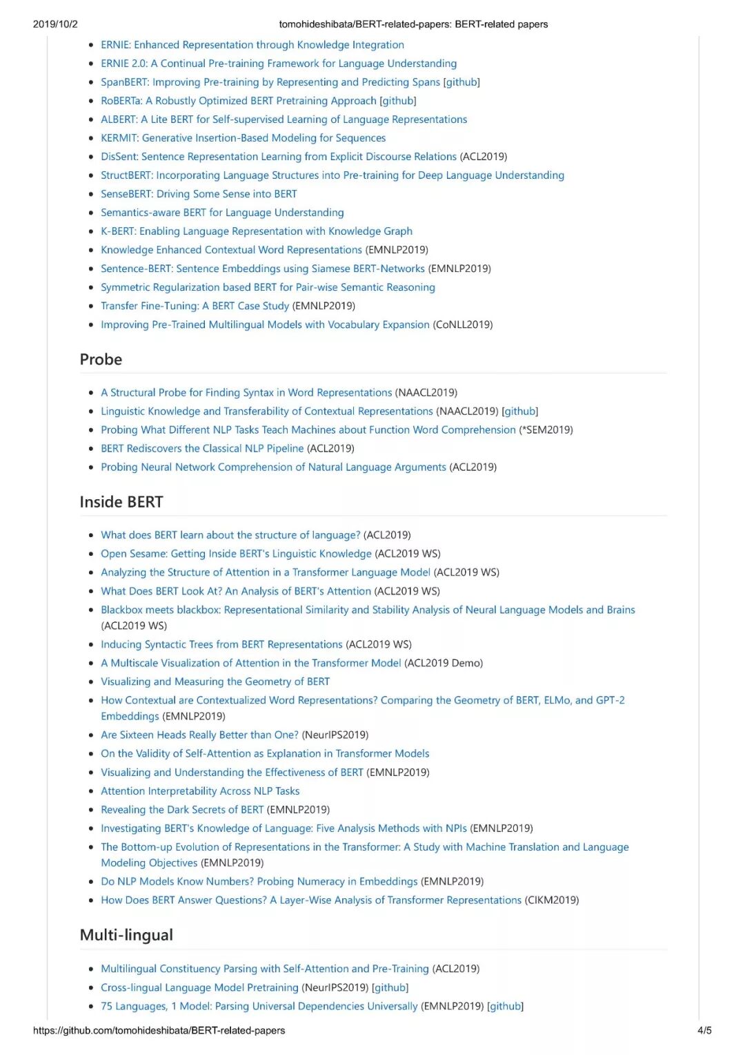 https://github.com/tomohideshibata/BERT-related-papers