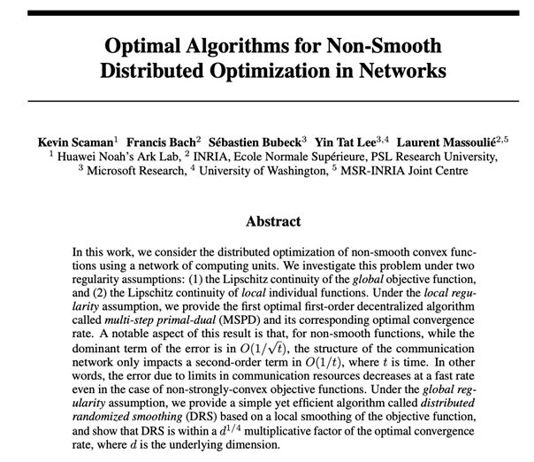 作者:Kevin Scaman、Francis Bach、Sébastien Bubeck、Yin Tat Lee、Laurent Mas-soulié。作者来自自华为诺亚方舟实验室、INRIA、微软研究院、华盛顿大学等机构