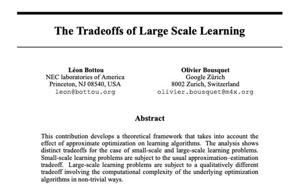 作者:Leon Bottou、Olivier Bousquet,分别来自NEC美国实验室和Google。