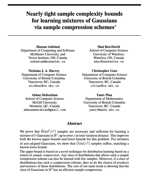 作者:Hassan Ashtiani、Shai Ben-David、Nicholas Harvey、Christopher Liaw、Abbas Mehrabian、Yaniv Plan。