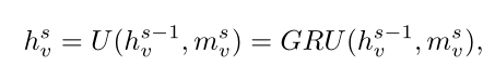 更新函数U(.)根据传入信息更新隐藏节点状态,文中采用门控递归单元(GRU)作为更新函数,表示