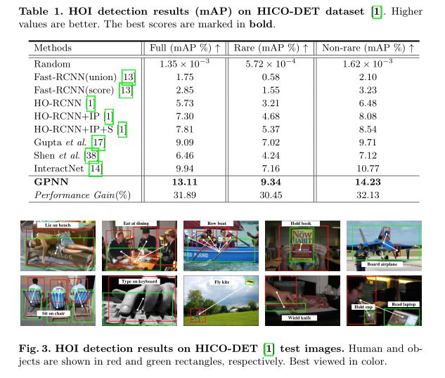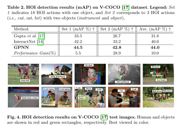 为了验证GPNN的有效性,文中分别再图像与视频上进行了人-对象交互检测实验。