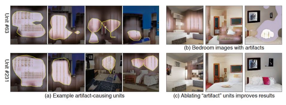 a)出于调试目的,我们可以识别引入工件......,b)和c)的那些单元并将它们关闭以“修复”GAN
