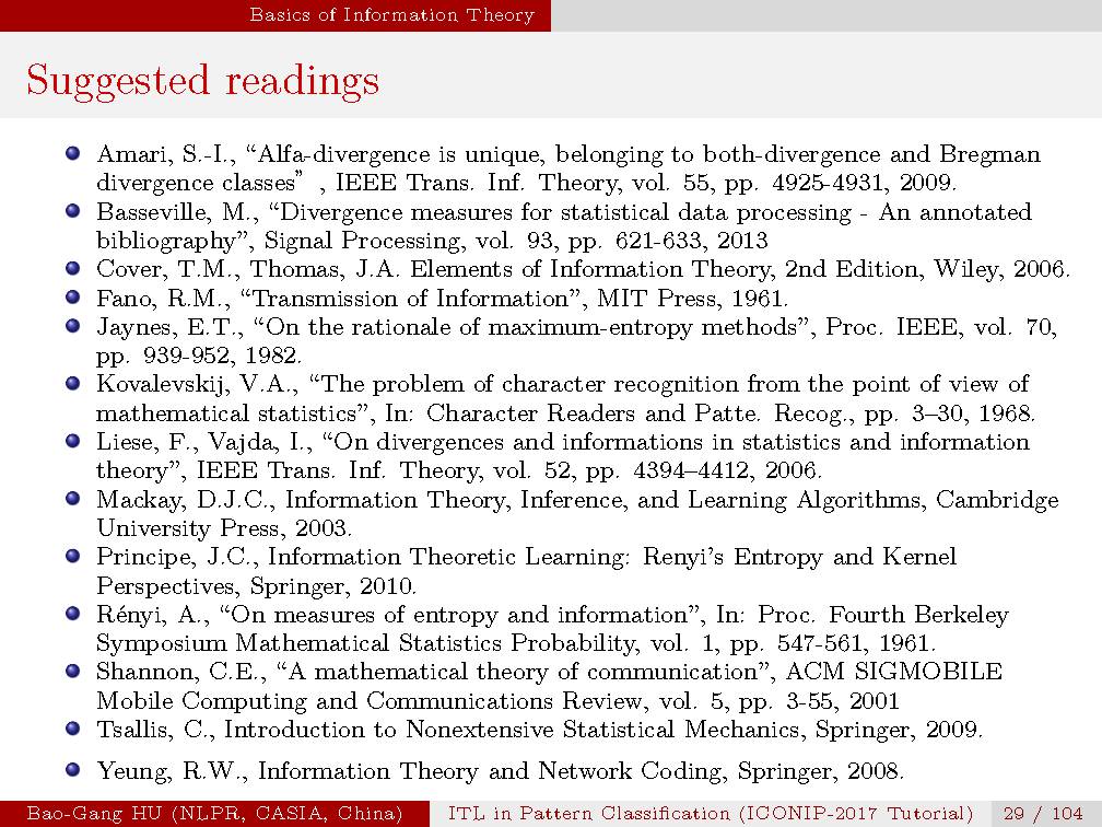 【导读】今天,专知很荣幸邀请到中科院自动化研究所胡包钢研究员分享他最近在国际神经信息处理会议ICONIP上做的教学报告。在这篇报告中,作者相信信息学习理论将会成为未来机器学习理论发展中更为重要的基础内容。在今年Yann LeCun教授访问中国科学院自动化所之际,作者将自己的一篇观点文章分享与他作为学术交流。深度学习近年来在各个领域取得了巨大的成功,然而深度神经网络的可解释性及其理论一直是一个问题。利用信息论来解释神经网络的文章也逐渐引起关注,比如《Deep Learning and the information Bottleneck Principle》《Opening the Black Box of Deep Neural Networks via Information》,深度学习先驱Geoffery Hinton也曾评价该文章”信息瓶颈极其有趣…或许是解开谜题的那把钥匙”。在本次报告中,作者从自己的理解介绍了信息学习理论与机器学习的区别与联系,希望能够给读者带来启发。文章末尾附有胡老师的信息理论学习的教程报告pdf下载。