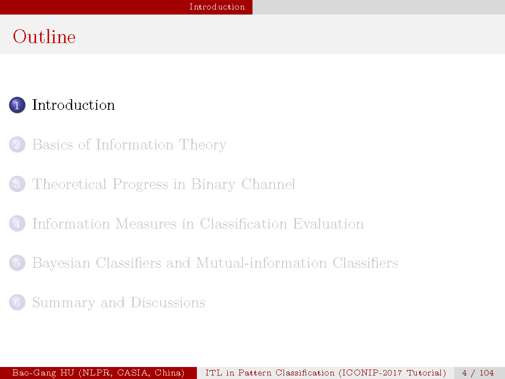 本次tutorial的目的是,1.介绍信息学习理论与模式识别的基本概念与原理;2.揭示最新的理论研究进展;3.从机器学习与人工智能的研究中启发思索。由于时间有限,本次只是大概介绍一下本次tutorial的内容,后续会详细介绍每一部分。