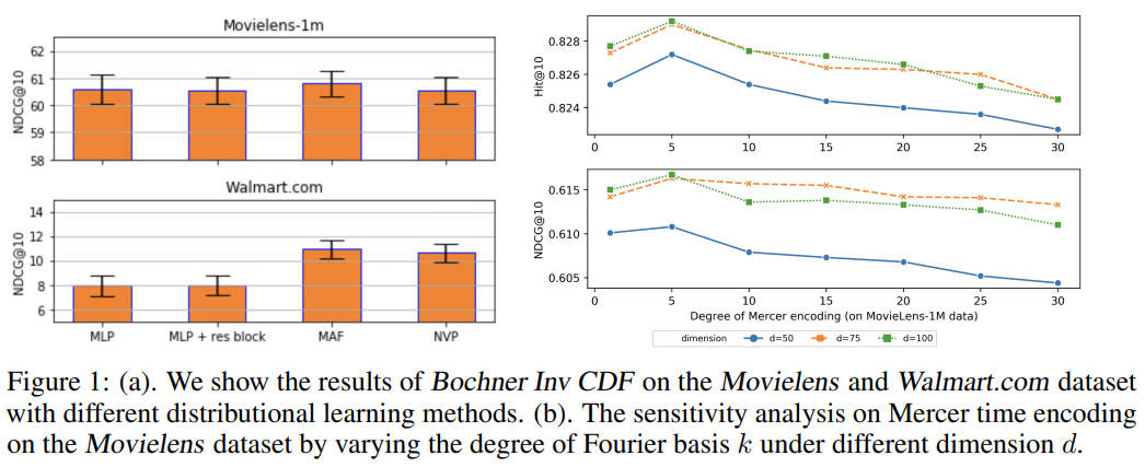 摘要:在自然语言处理中,具有self-attention的序列模型已经取得了很好的效果。self-attention具有模型灵活性、计算复杂性和可解释性等优点,正逐渐成为事件序列模型的重要组成部分。然而,像大多数其他的序列模型一样,自我注意并不能解释事件之间的时间跨度,因此它捕捉的是序列信号而不是时间模式。在不依赖递归网络结构的情况下,self-attention通过位置编码来识别事件的顺序。为了弥补时间无关和时间相关事件序列建模之间的差距,我们引入了一个嵌入时间跨度到高维空间的功能特征映射。通过构造相关的平移不变时间核函数,揭示了经典函数函数分析结果下特征图的函数形式,即Bochner定理和Mercer定理。我们提出了几个模型来学习函数性时间表示以及与事件表示的交互。这些方法是在各种连续时间事件序列预测任务下对真实数据集进行评估的。实验结果表明,所提出的方法与基线模型相比,具有更好的性能,同时也能捕获有用的时间-事件交互。