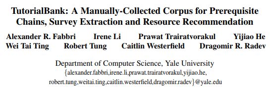 title = {TutorialBank: A Manually-Collected Corpus for Prerequisite Chains, Survey Extraction and Resource Recommendation},