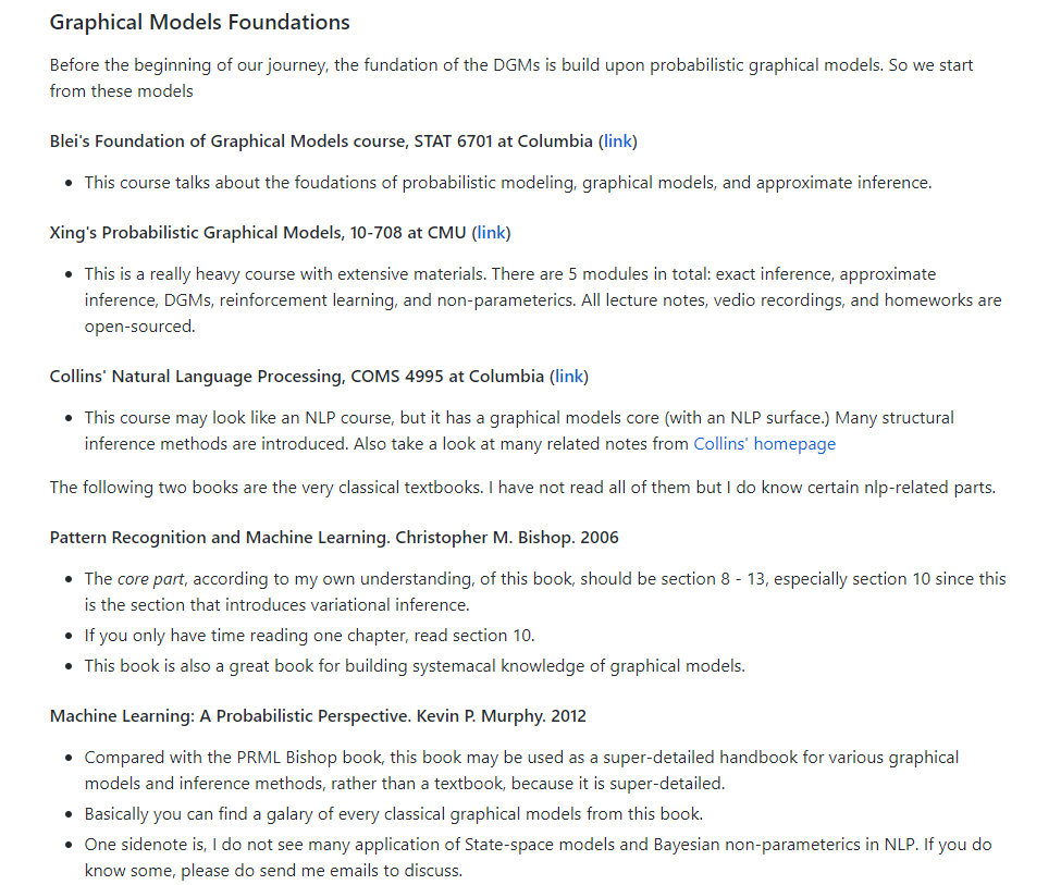 想要跟国内的同学们分享的一点是,图模型的部分在国内计算机的课程体系中严重缺失,我在北大本科的时候几乎听都没听说过,很多内容都是到了哥大之后补上的。但这是机器学习中相当理论和核心的一部分,因此需要认真对待。PRML 中的变分推断一章是很好的入门材料。