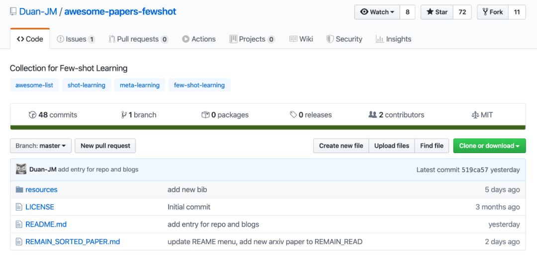 【导读】Few-Shot Learning 由于其任务的特殊性,以及其应用可能带来的巨大价值,吸引了大量人工智能领域学者的目光。为了帮助广大希望入坑小样本学习的同胞减少入坑搜集论文的时间成本,Duan-JM同学,在Github上分享了《awesome-papers-fewshot》库,收集了近几年顶会中的小样本学习的文章。对few shot learning感兴趣的同学不要错过。