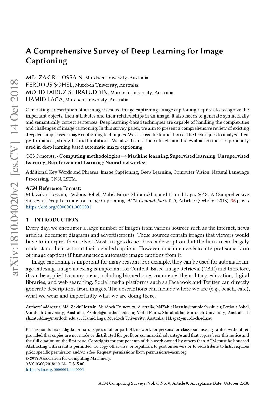 题目: A Comprehensive Survey of Deep Learning for Image Captioning