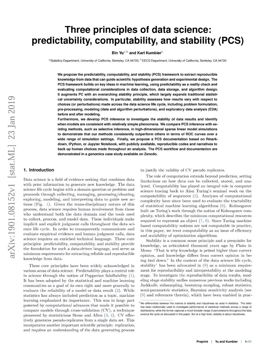 【UC伯克利郁彬老师最新论文】数据科学的三原则:可预测性、可计算、稳定性