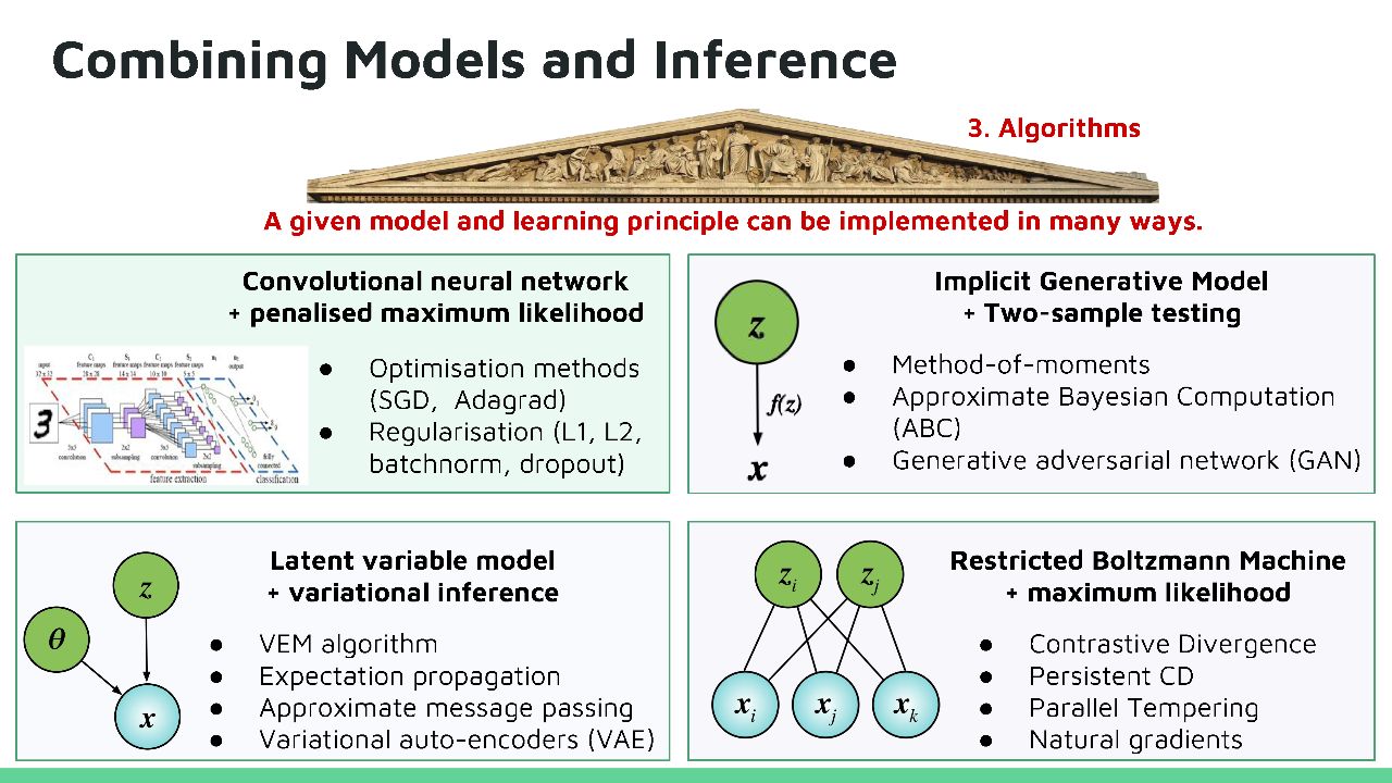 本教程将回顾深度生成模型的最新进展。生成模型在人工智能不确定(Uncertainty in Artificial Intelligence, UAI)研究方面有着悠久的历史,近期的方法尝试将概率推理的普遍性与深度学习的可扩展性相结合来开发新的深度学习算法,这些算法已经在很多问题上得到广泛应用,并在图像生成、语音合成和图像字幕等方面获得领先的结果。目前深度生成模型的研究处于深度学习研究的前沿地带,因为它高效数据学习和基于模型强化学习方面有着天然的优势。在本教程中,观众将对生成模型的最新进展有全面了解,其中包括三种最活跃模型:马尔可夫模型(Markov models,)、隐变量模型(latent variable models)和隐式模型(implicit models),以及如何将这些模型扩展到高维数据。本教程还揭示这个领域仍然存在的许多问题,所以在UAI领域还有有很多研究机会。