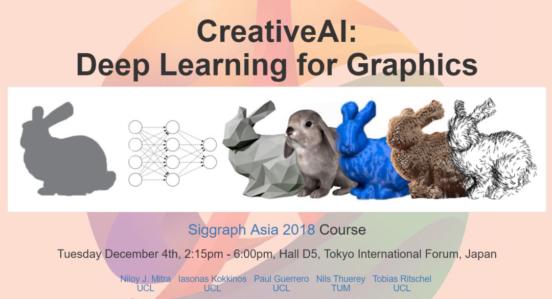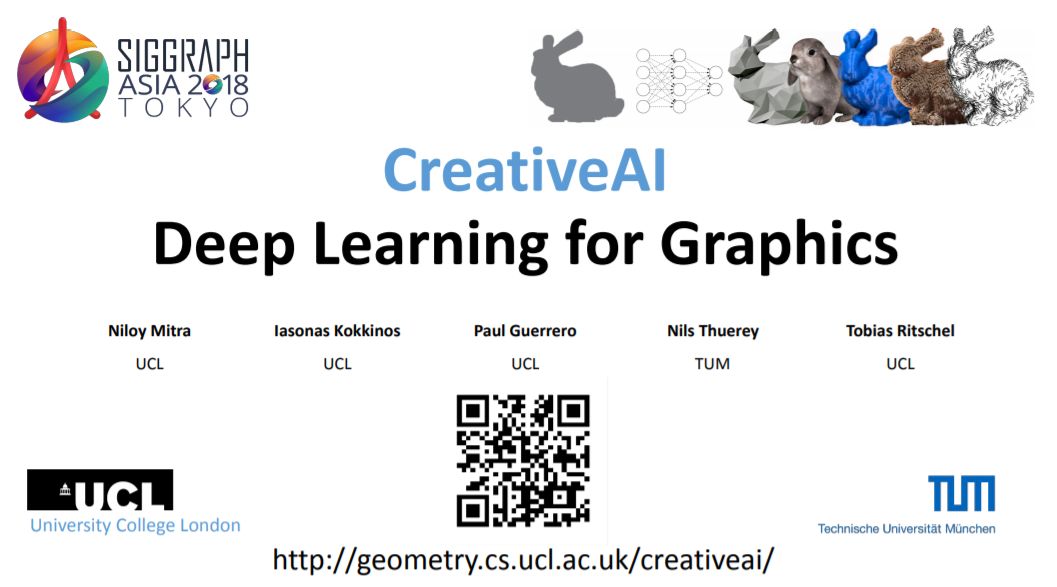 【导读】2018年12月4日-7日,全亚洲最大的计算机图形与互动技术会议与展会——SIGGRAPH Asia 2018大会在日本东京隆重举行。作为计算机图形学顶级会议,SIGGRAPH大会邀请了国际上在影像技术方面有建树的学者、技术名流大咖及高新技术企业共同研讨交流,展示最先进的图形学技术。来自英国伦敦大学学院UCL的Niloy J. Mitra等学者做了关于深度学习在计算机图形学应用的报告,《CreativeAI: Deep Learning for Graphics 》包含八个主题以及对应的报告,以及教程代码,是一份不可多得的参阅学习教程,欢迎查看!