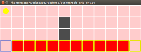 from gridworld import GridWorldEnvfrom gym import spacesenv = GridWorldEnv(n_width=12, # 水平方向格子数量