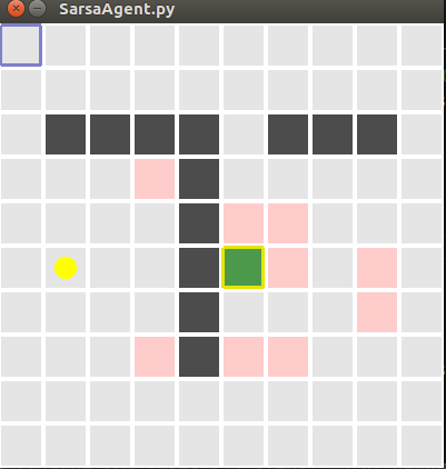 其他不同颜色的格子表示格子的即时奖励值不同,奖励值为0的格子颜色为灰色,奖励值为负值颜色显示偏向与红色,值越小,红色越深;奖励值大于0的格子偏向于显示绿色,值越大,绿色越饱满;