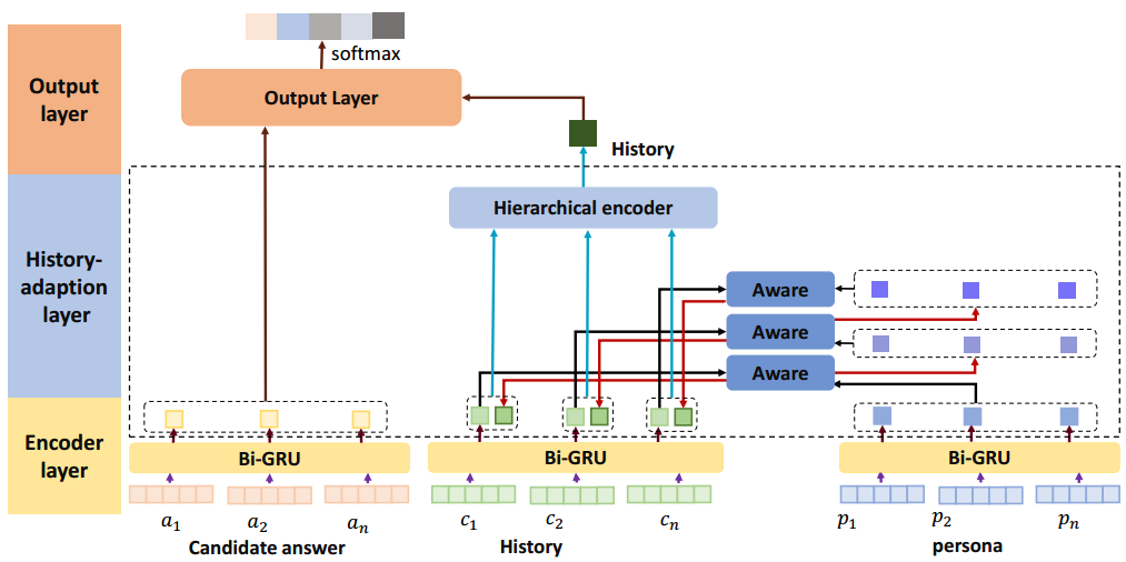 模型整体分为encoder layer,history-adaption layer以及output layer。