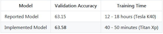 前两点大大缩短了训练时间。我们的实现在单个Titan Xp上每个时段(epoch)约需要200秒,而在论文中描述的每个时段需要1个小时。