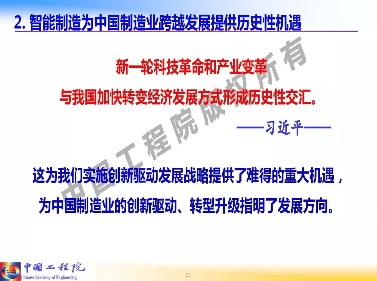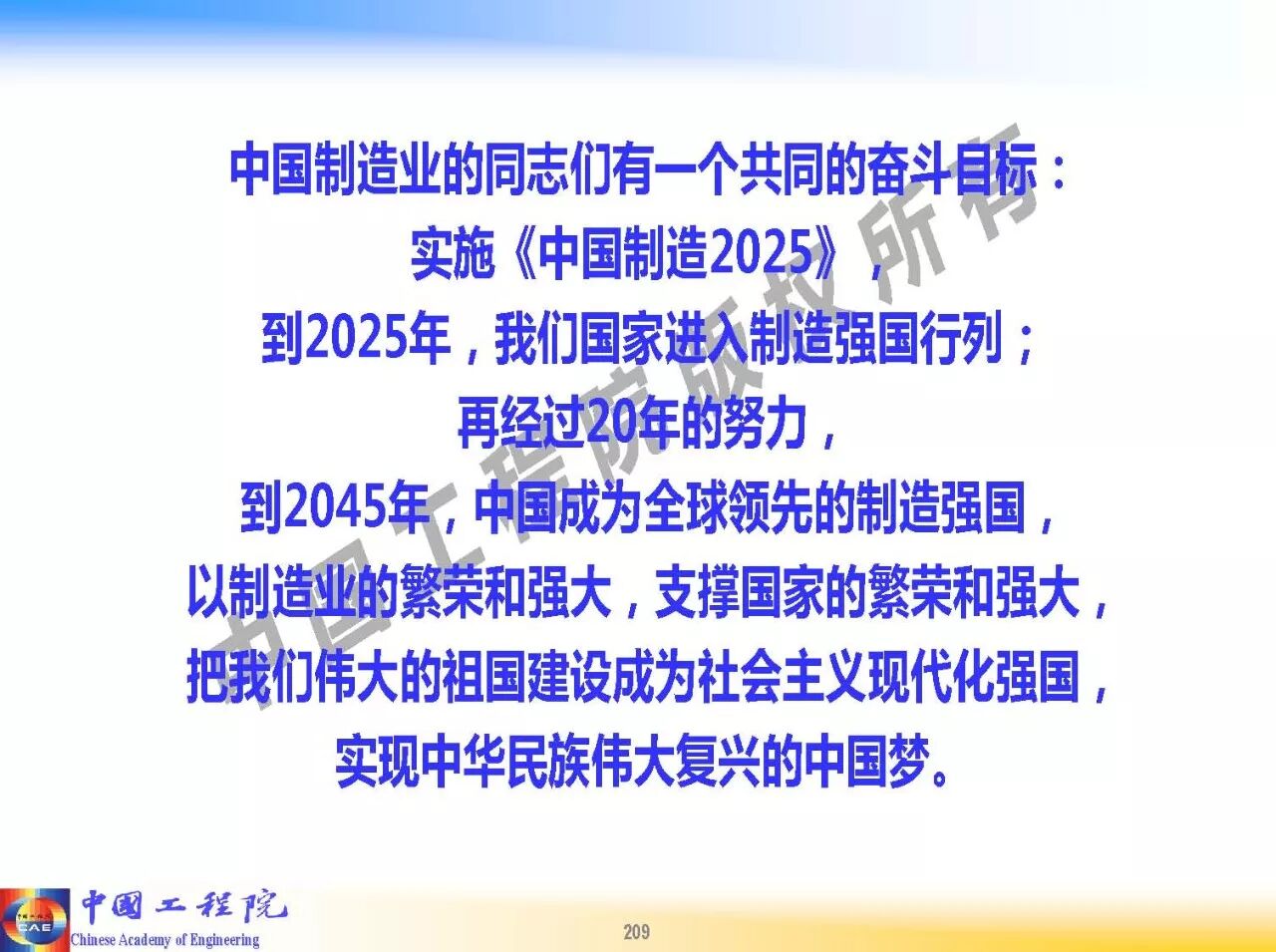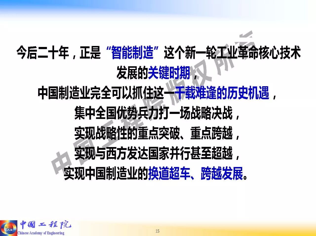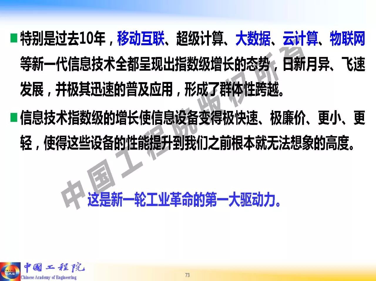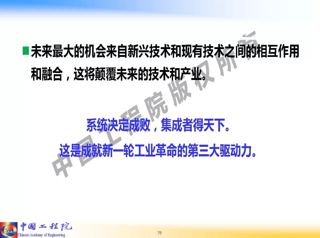1月12日,由中国机械工程学会、中国汽车工程学会、中国电工技术学会、中国仪器仪表学会、中国农业机械学会等五学会联合主办的“迎春报告会”在中国工程院报告厅举办,中国工程院周济院长做主题报告,报告题目“新一代智能制造——新一轮工业革命的核心驱动力”。报告长达209页,全面阐述了新一代智能制造引领和推动新一轮工业革命。
