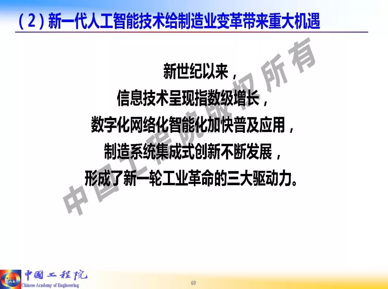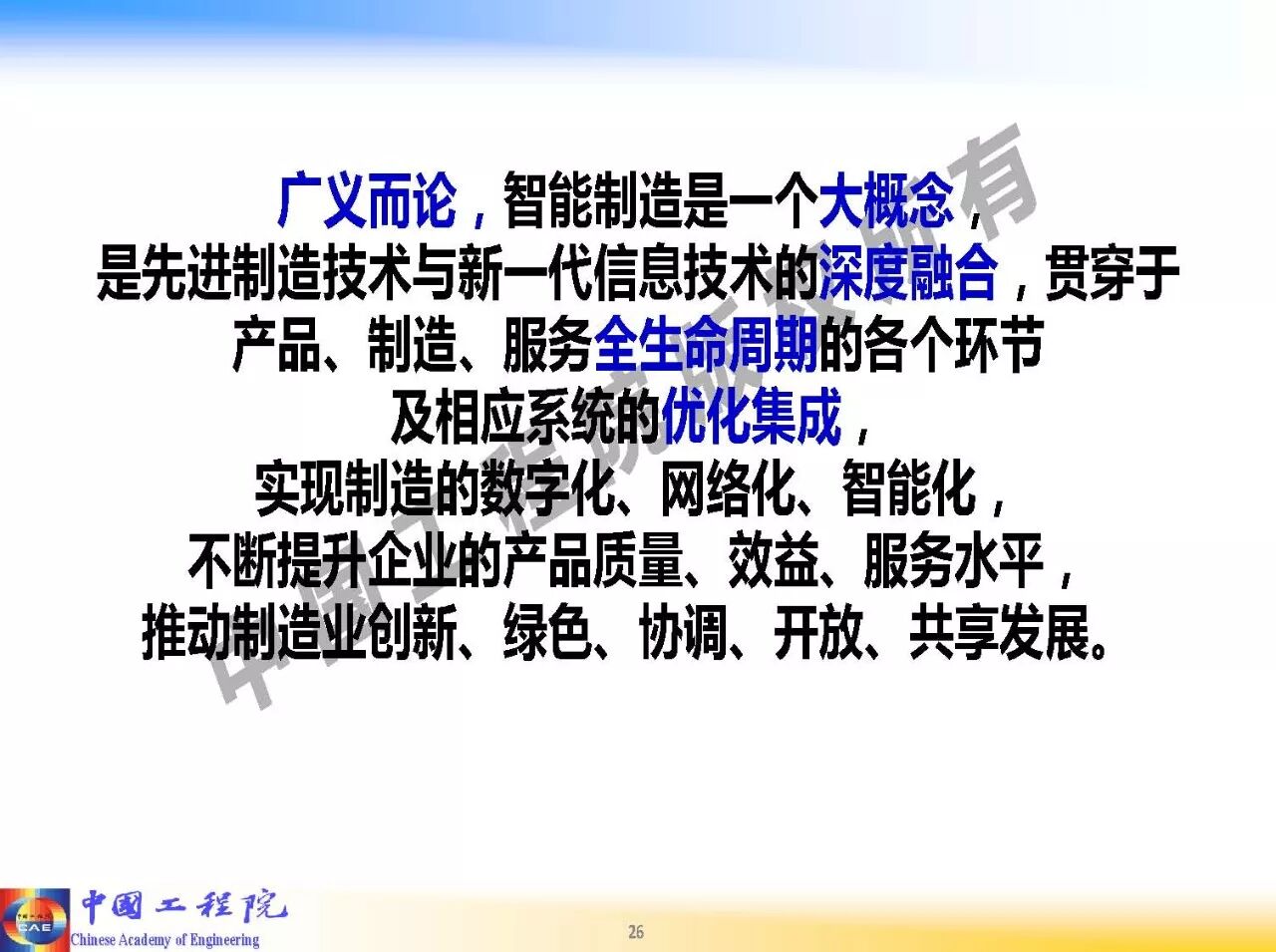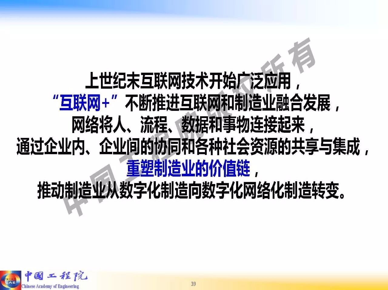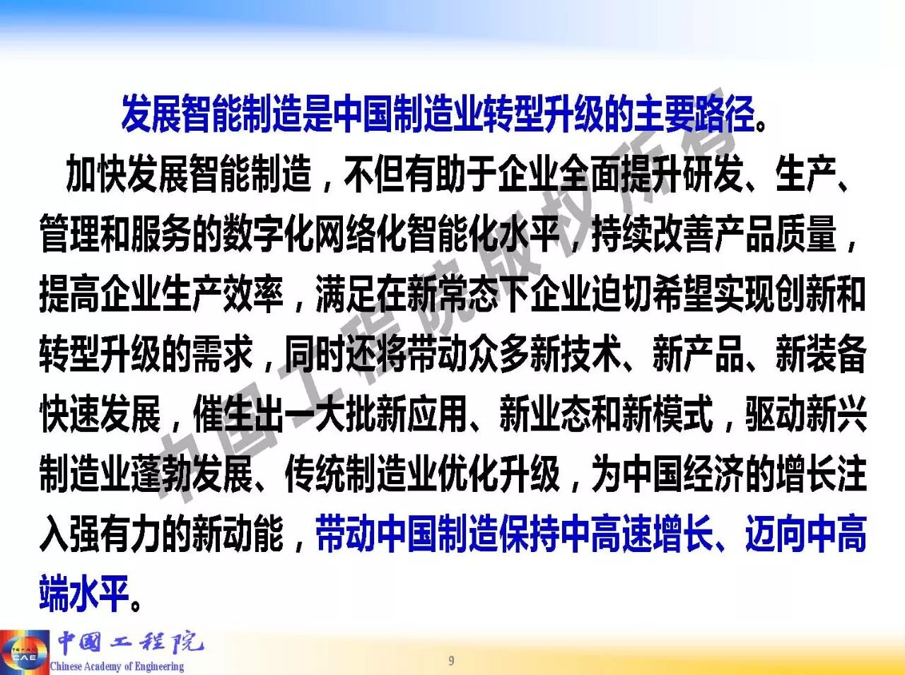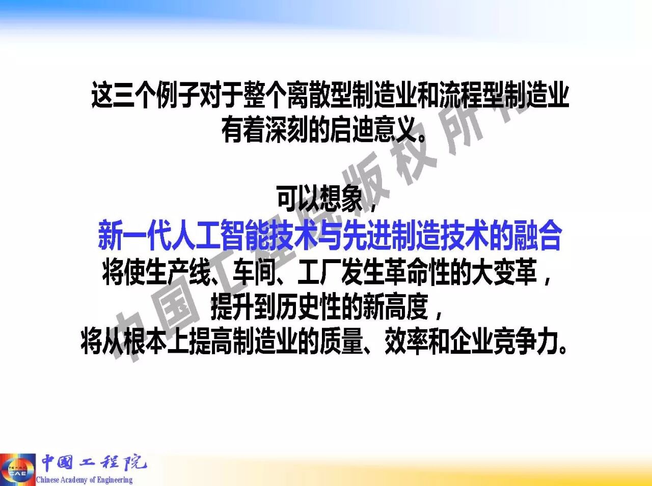 1月12日,由中国机械工程学会、中国汽车工程学会、中国电工技术学会、中国仪器仪表学会、中国农业机械学会等五学会联合主办的“迎春报告会”在中国工程院报告厅举办,中国工程院周济院长做主题报告,报告题目“新一代智能制造——新一轮工业革命的核心驱动力”。报告长达209页,全面阐述了新一代智能制造引领和推动新一轮工业革命。