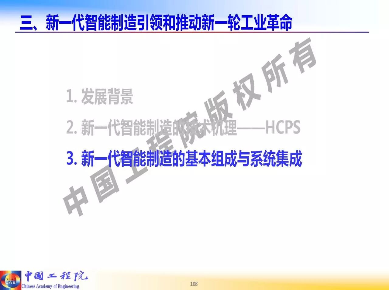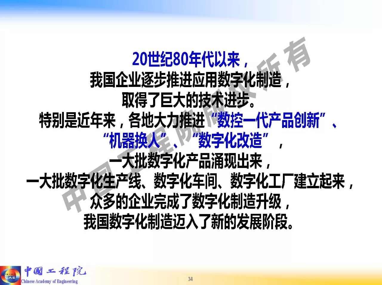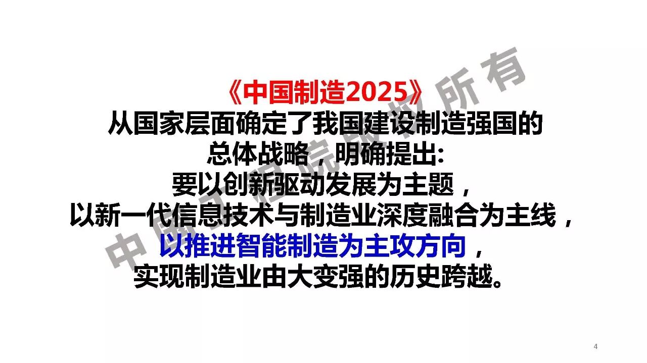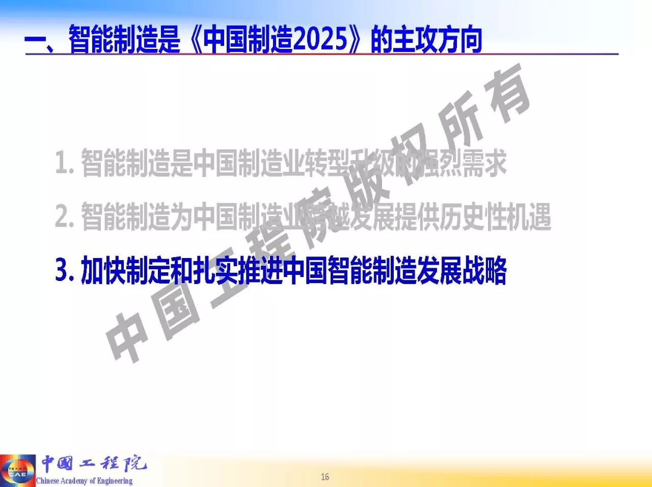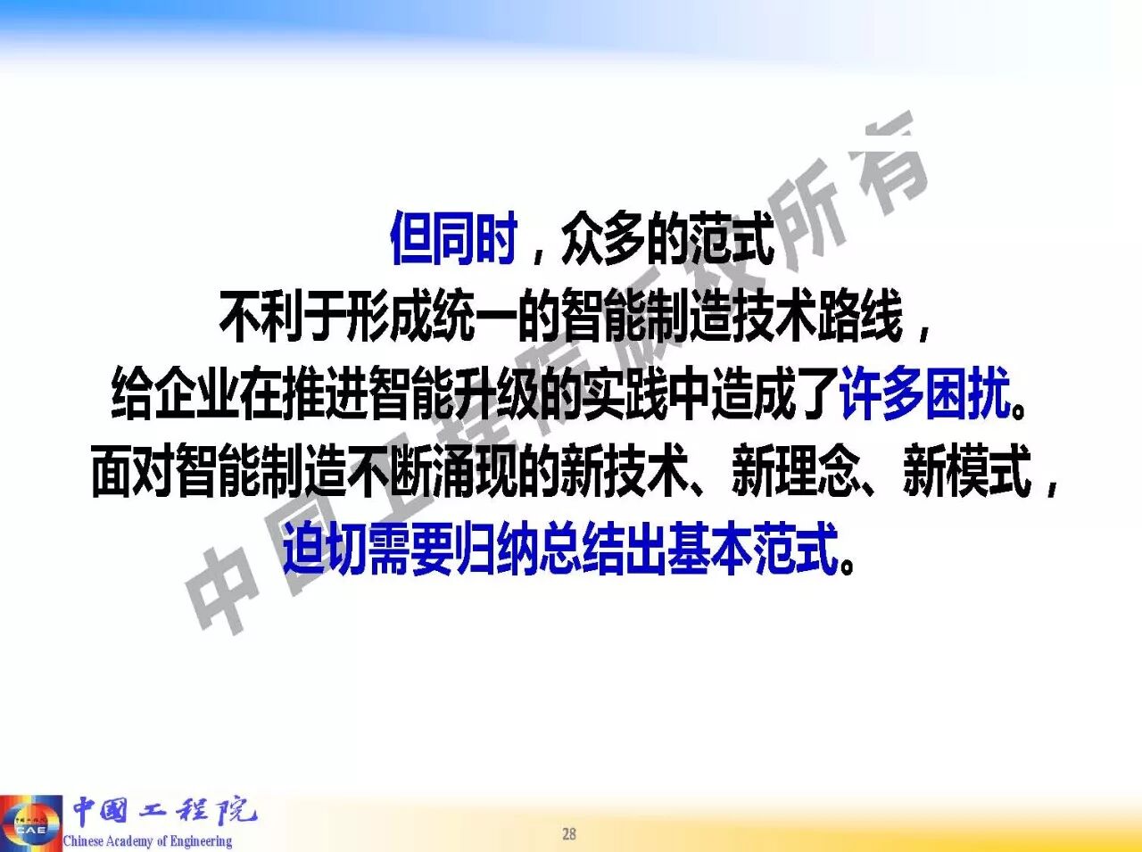 1月12日,由中国机械工程学会、中国汽车工程学会、中国电工技术学会、中国仪器仪表学会、中国农业机械学会等五学会联合主办的“迎春报告会”在中国工程院报告厅举办,中国工程院周济院长做主题报告,报告题目“新一代智能制造——新一轮工业革命的核心驱动力”。报告长达209页,全面阐述了新一代智能制造引领和推动新一轮工业革命。