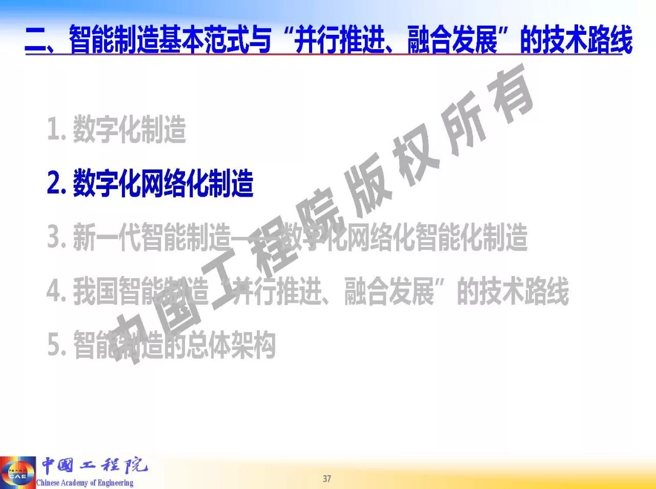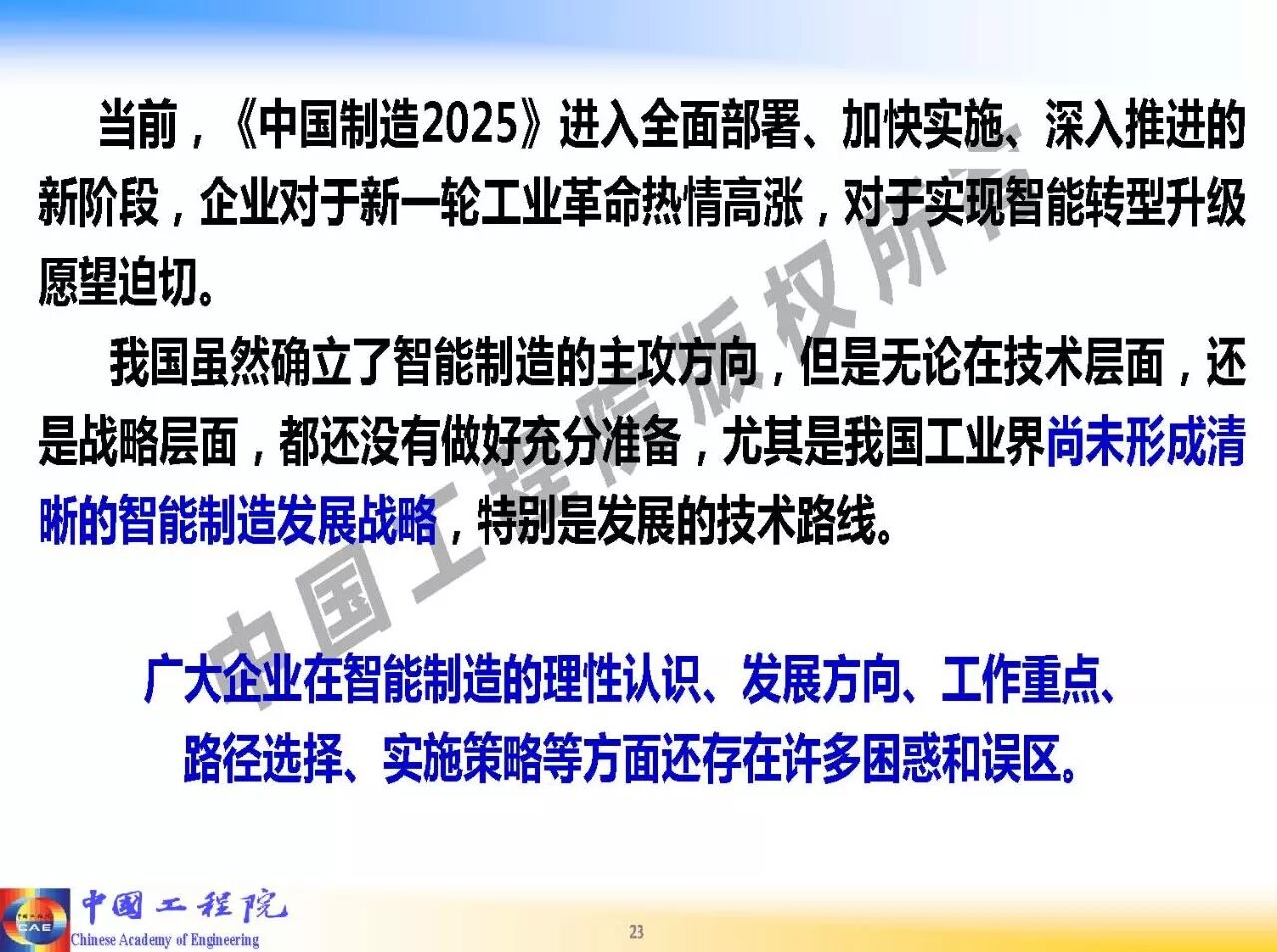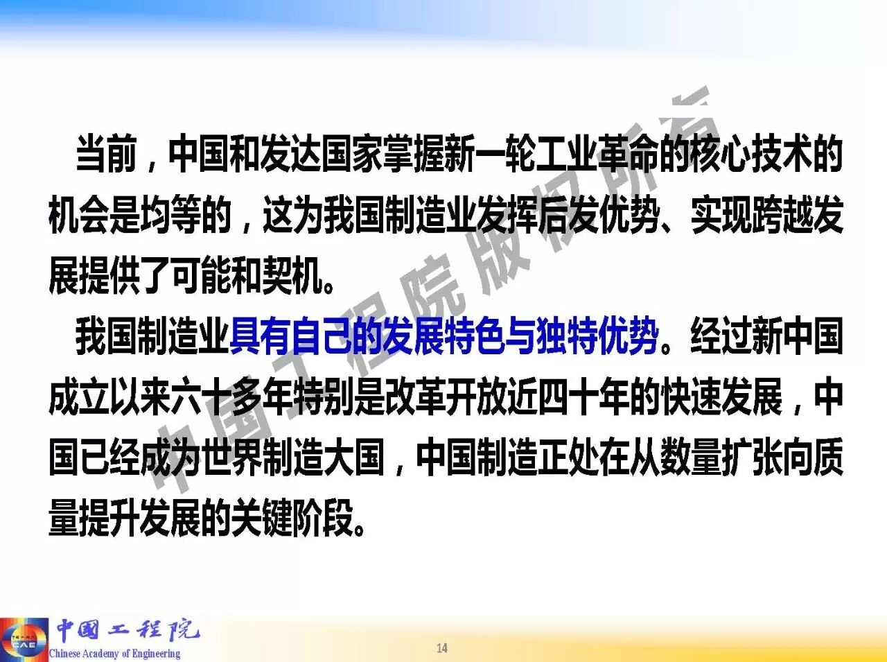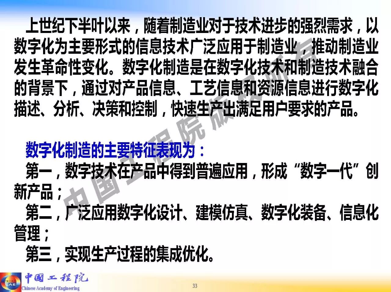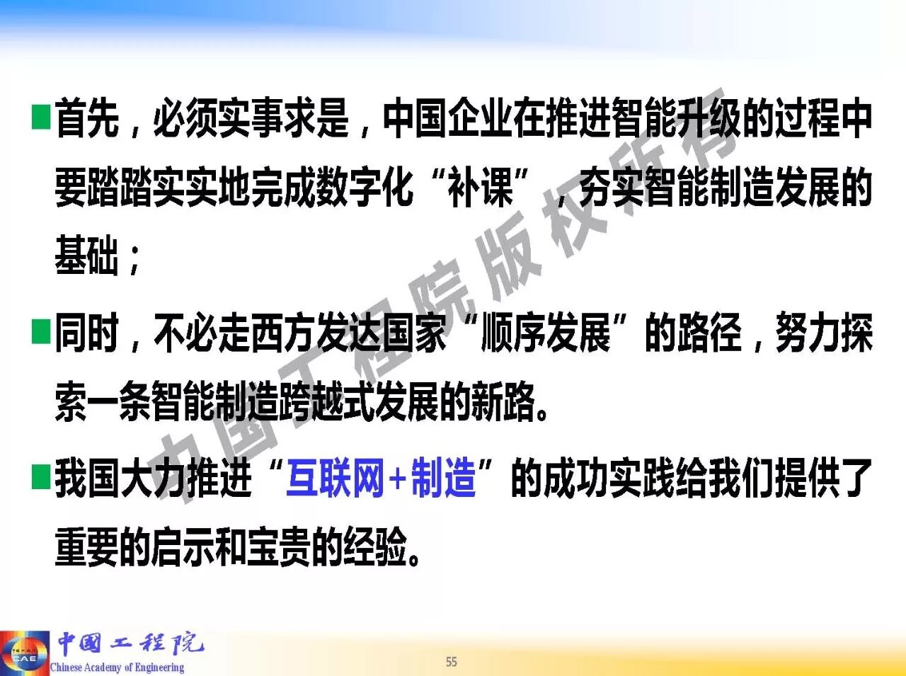 1月12日,由中国机械工程学会、中国汽车工程学会、中国电工技术学会、中国仪器仪表学会、中国农业机械学会等五学会联合主办的“迎春报告会”在中国工程院报告厅举办,中国工程院周济院长做主题报告,报告题目“新一代智能制造——新一轮工业革命的核心驱动力”。报告长达209页,全面阐述了新一代智能制造引领和推动新一轮工业革命。