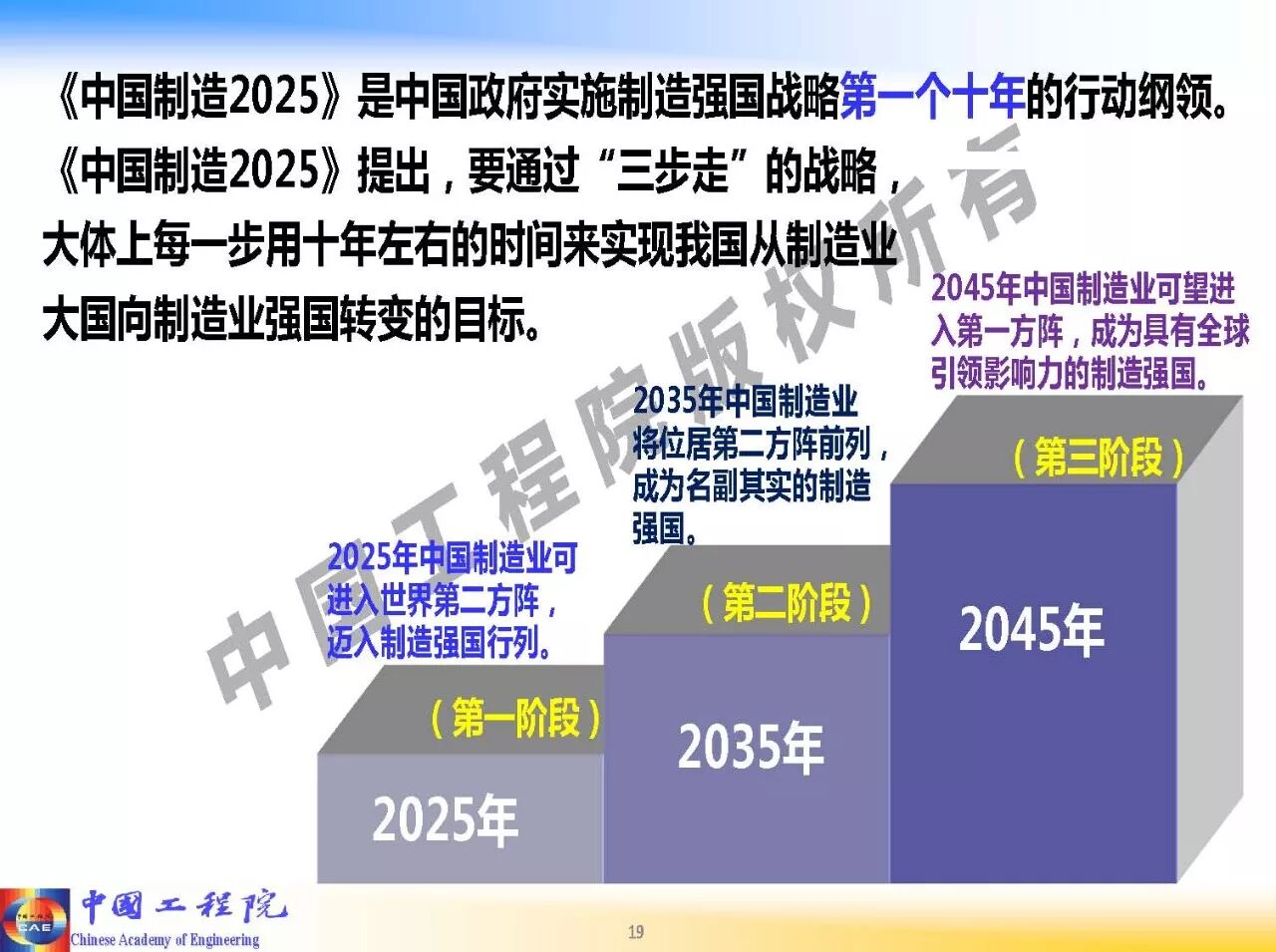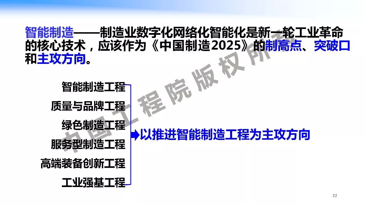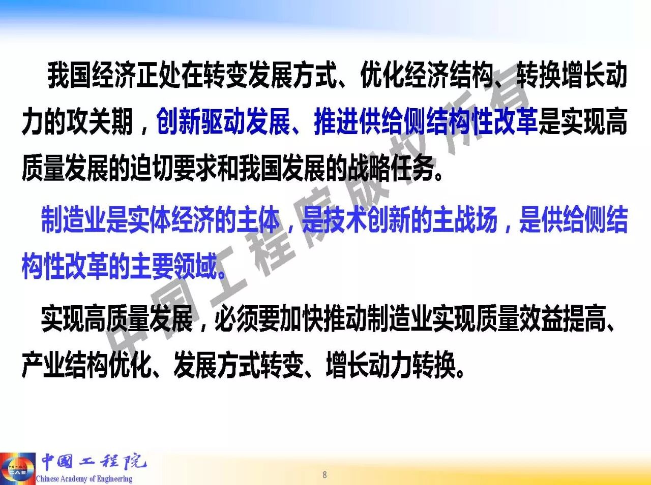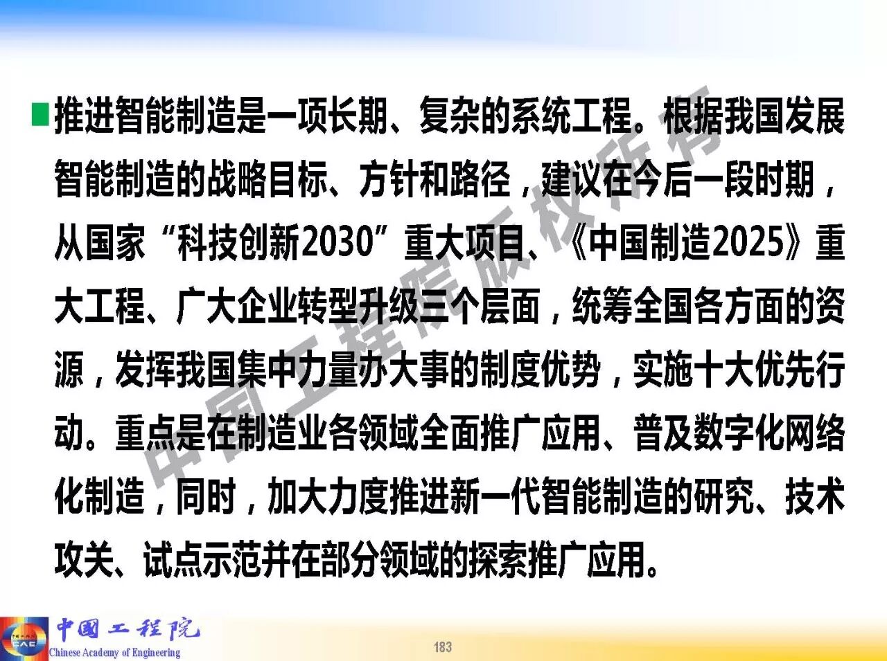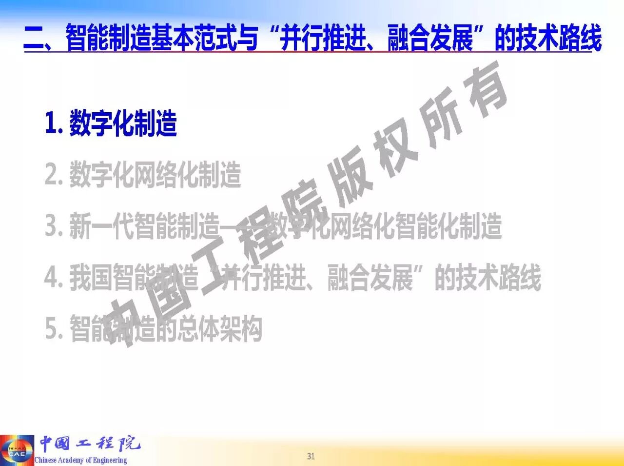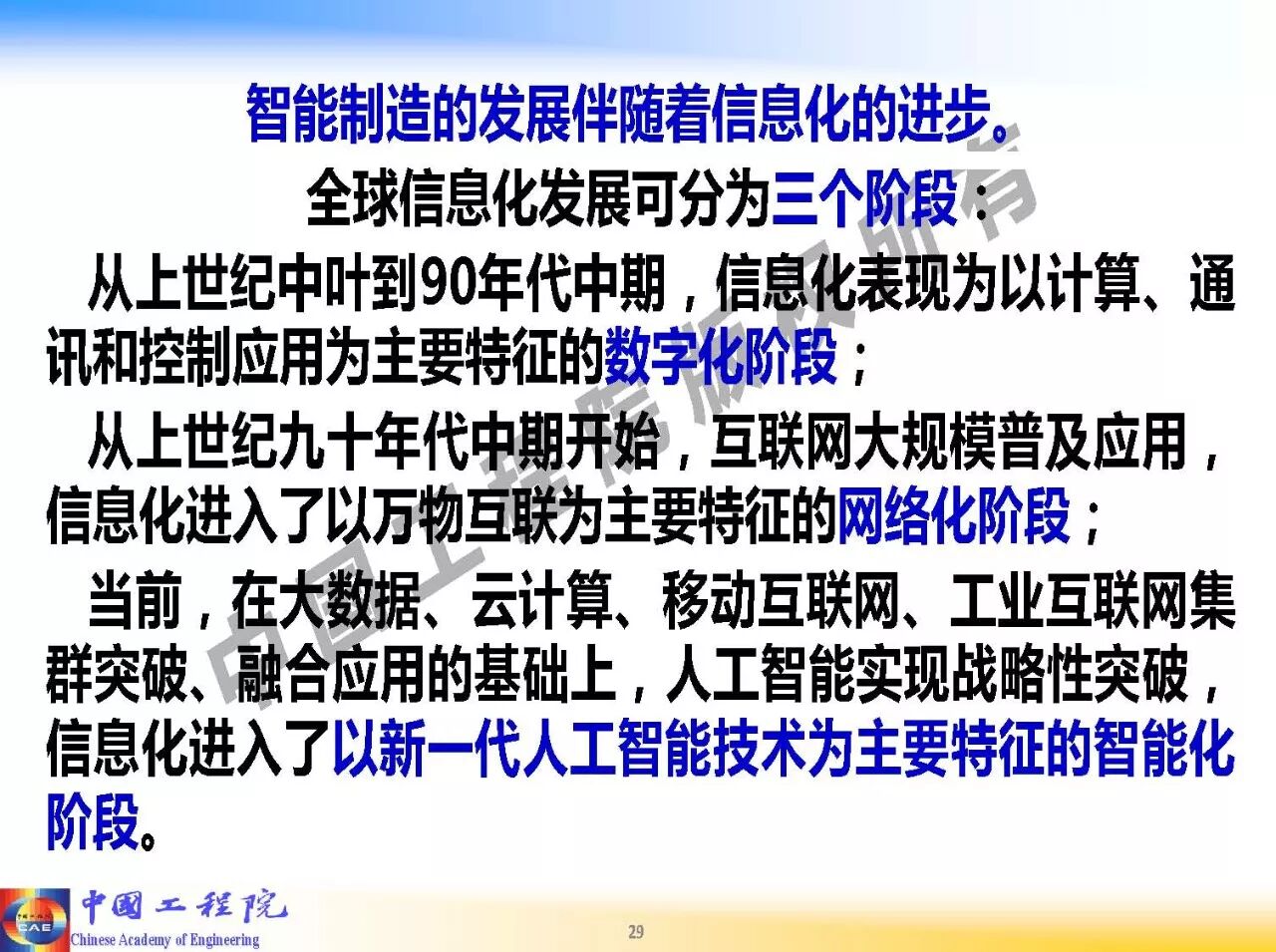 1月12日,由中国机械工程学会、中国汽车工程学会、中国电工技术学会、中国仪器仪表学会、中国农业机械学会等五学会联合主办的“迎春报告会”在中国工程院报告厅举办,中国工程院周济院长做主题报告,报告题目“新一代智能制造——新一轮工业革命的核心驱动力”。报告长达209页,全面阐述了新一代智能制造引领和推动新一轮工业革命。