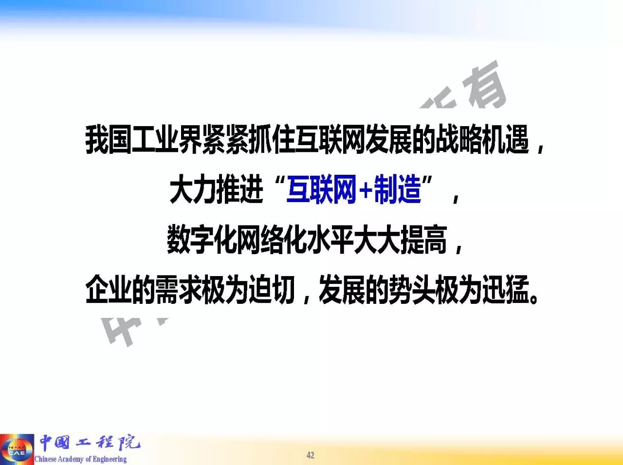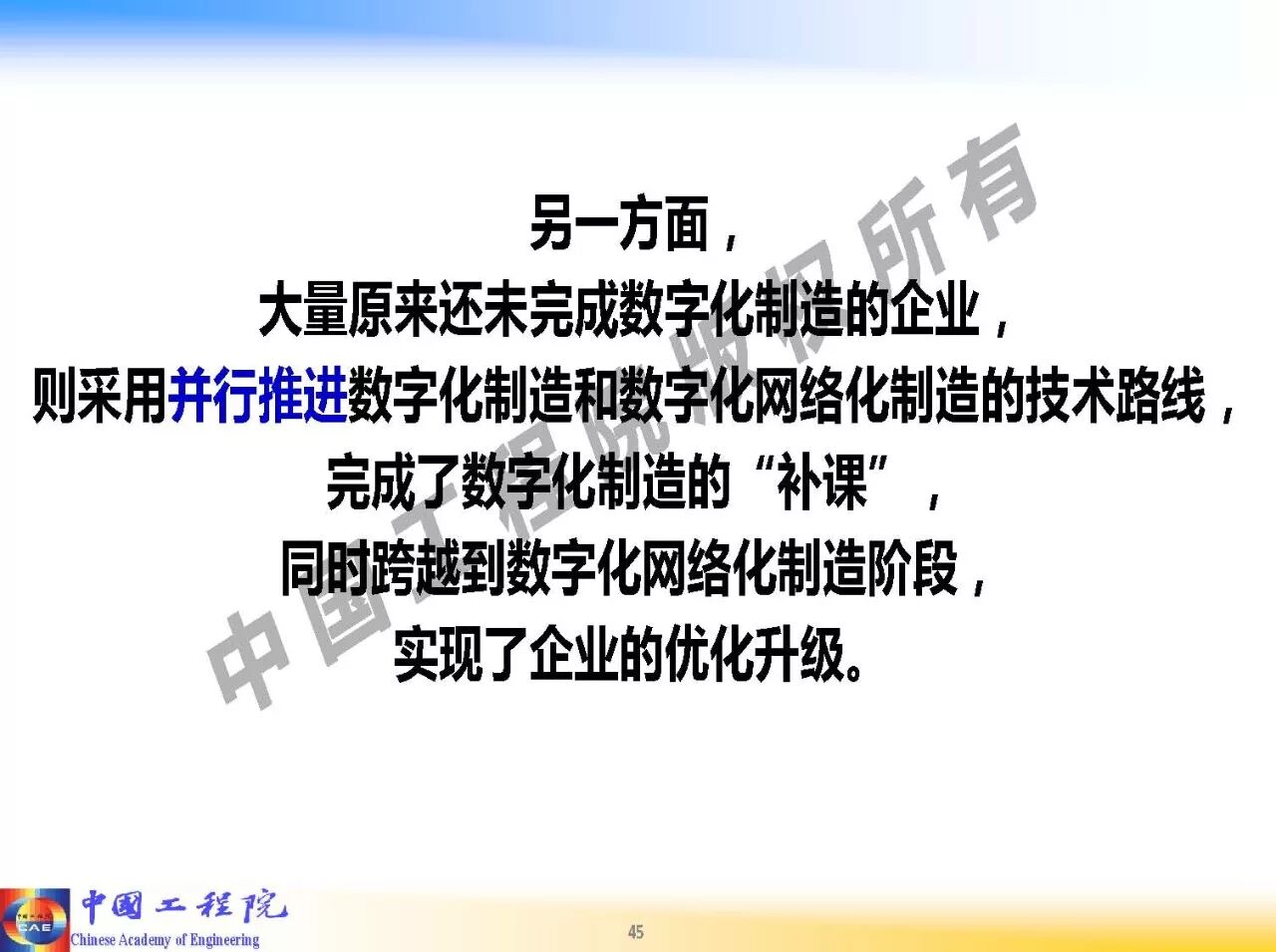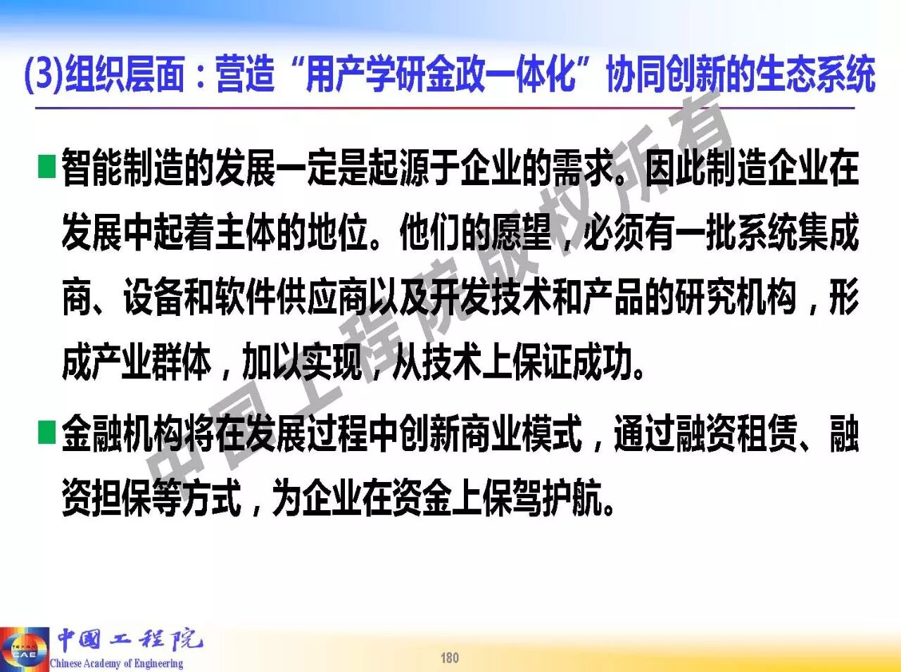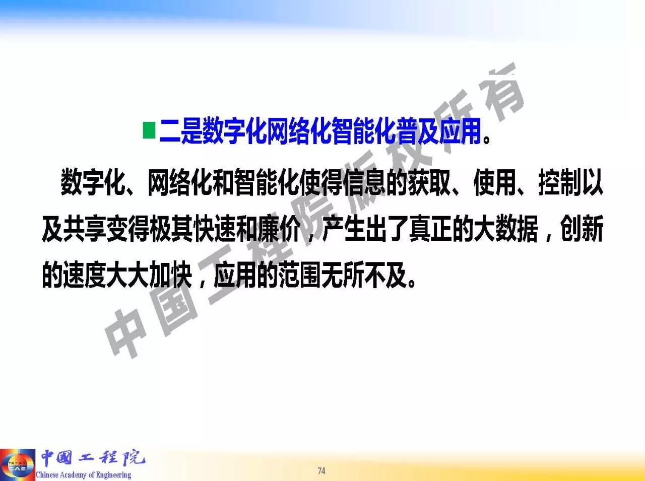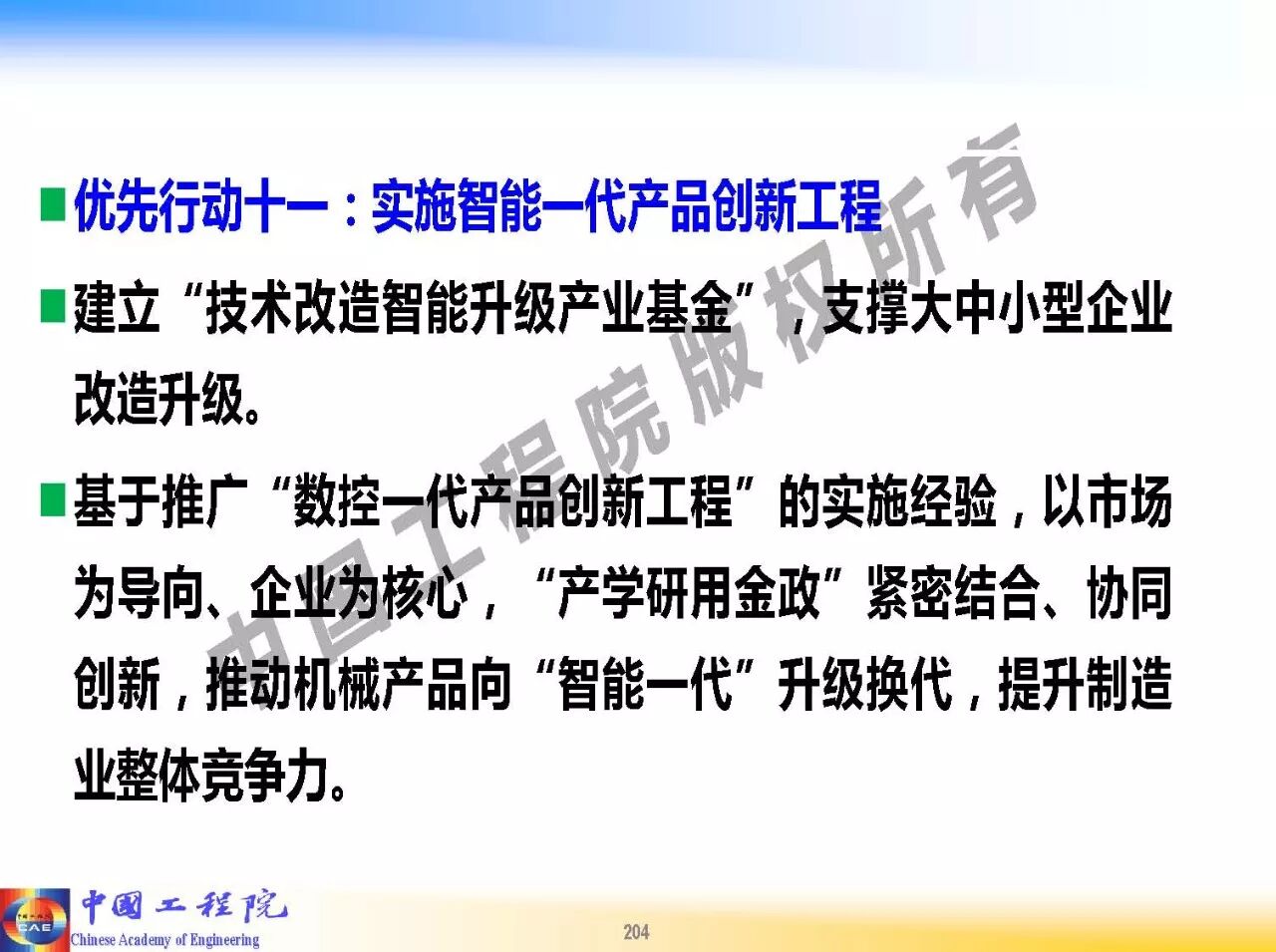 1月12日,由中国机械工程学会、中国汽车工程学会、中国电工技术学会、中国仪器仪表学会、中国农业机械学会等五学会联合主办的“迎春报告会”在中国工程院报告厅举办,中国工程院周济院长做主题报告,报告题目“新一代智能制造——新一轮工业革命的核心驱动力”。报告长达209页,全面阐述了新一代智能制造引领和推动新一轮工业革命。