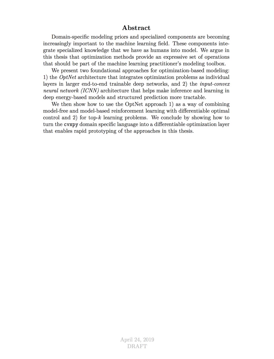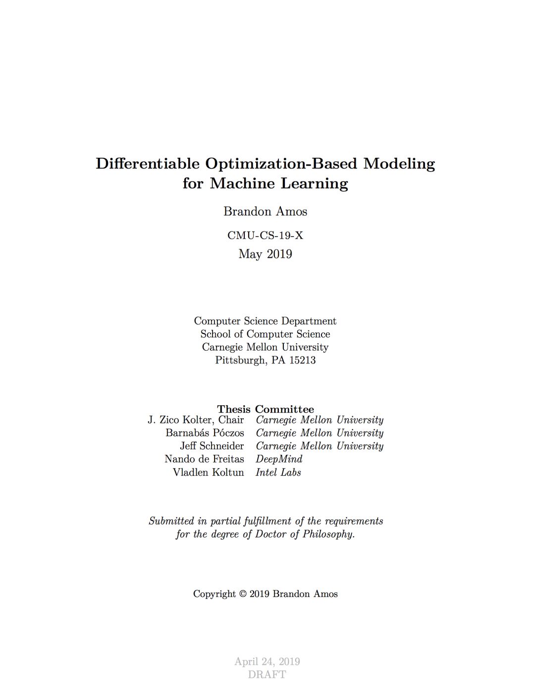 【导读】CMU大神博士生Brandon Amos,马上就要毕业了。博士期间,他在可微优化机器学习建模方向,发表了ICLR 一篇,ICML 三篇,NeurIPS 三篇,分析了可微优化机器学习建模的很多问题。近日,他将自己的博士论文也开放了出来,系统的讲述了可微优化机器学习建模的方方面面,相关方向的同学们,赶紧来看看吧。