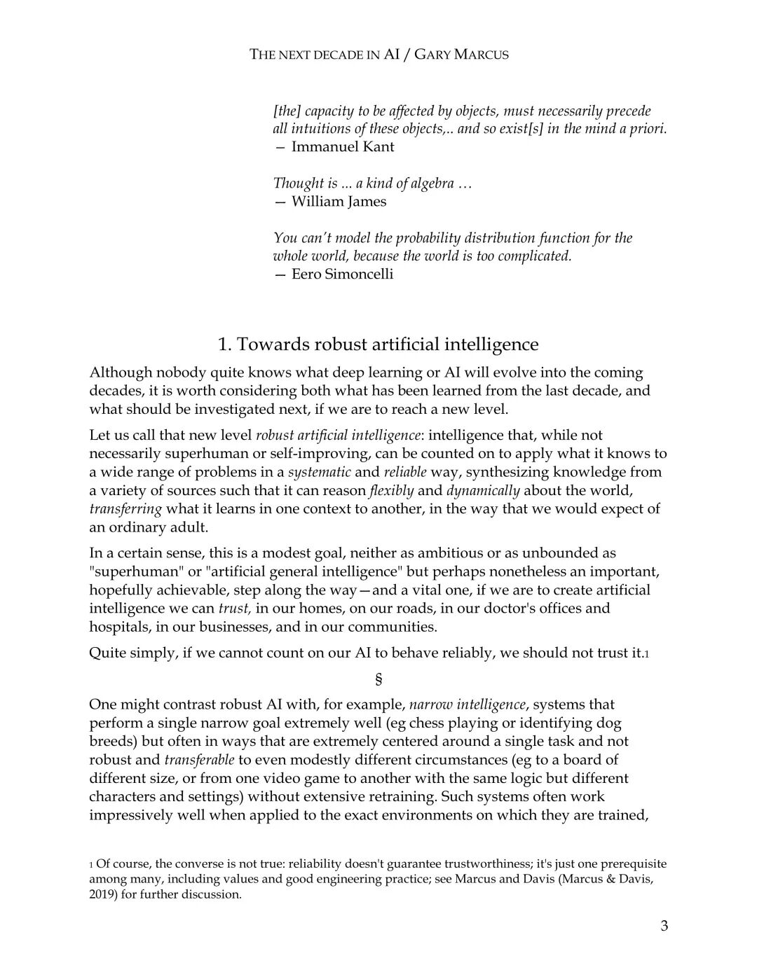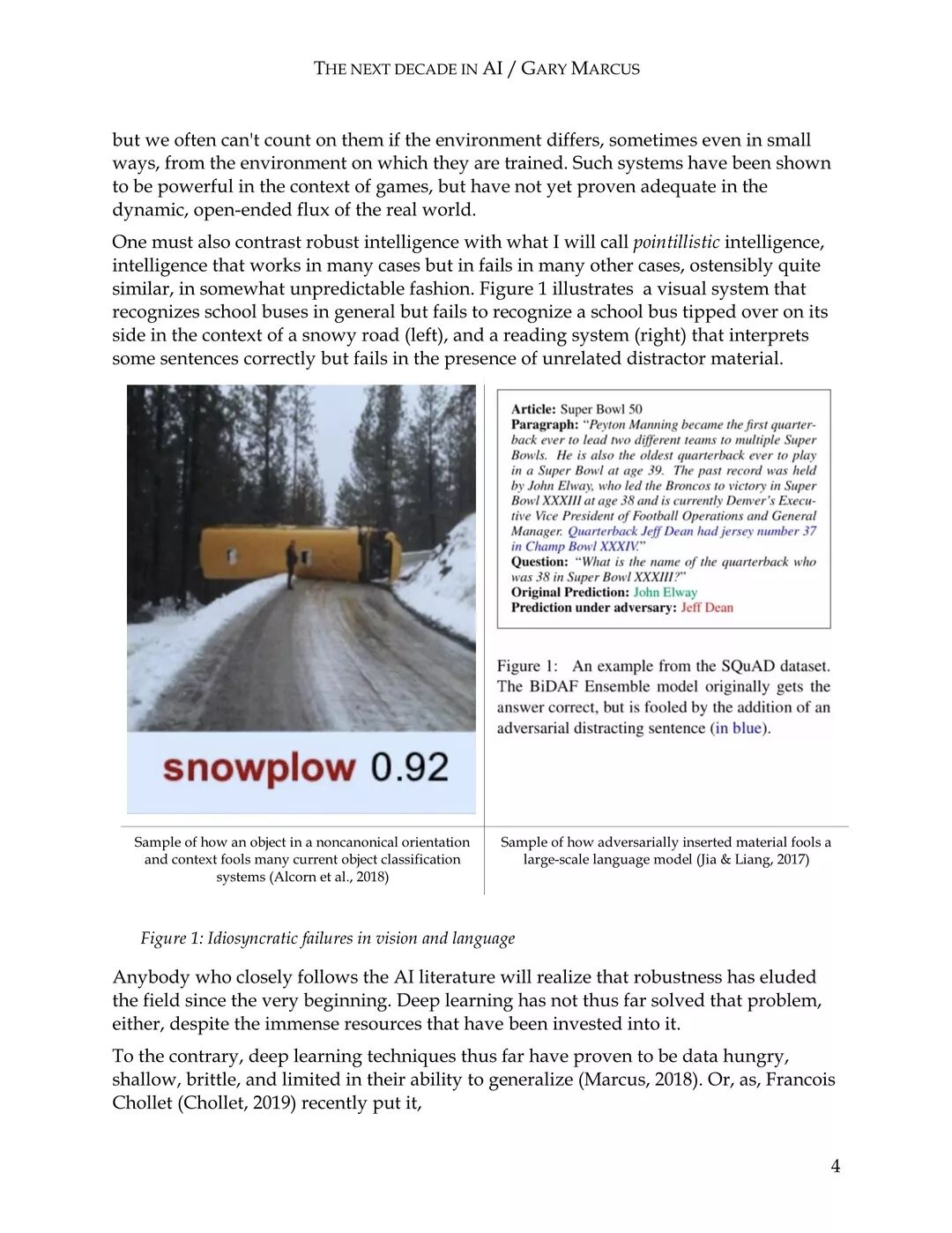 他说:“相比纯粹的深度学习,我呼吁混合模型,不仅包括深度学习的监督形式,还包括其他技术,例如符号处理(symbol-manipulation),以及无监督学习(它本身也可能被重新概念化)。我也敦促社区考虑将更多的内在结构纳入 AI 系统。”