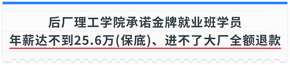 所以后厂理工学院愿意直接承诺,金牌就业班学员进不了大厂全额退款。