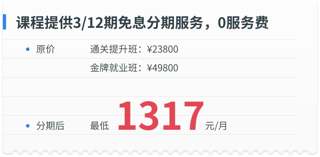基于我们对课程内容及项目难度的绝对信任,我们相信所有认真学习的学员在就业薪资方面,是最不需要我们额外操心解决的问题。
