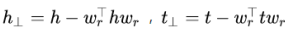 使用一个映射矩阵,把不同的实体向量映射到相同的向量空间中,,其中