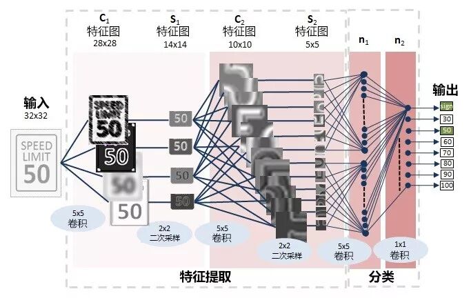 例如,若训练深度卷积神经网络(CNN)来对图像进行分类,则第一层学习识别边缘等最基本的东西。下一层学习识别成形的边缘的集合。后续图层学习识别诸如眼或鼻这样的形状的集合,而最后一层将学习甚至更高阶(如面部)的特征。多层更擅长进行归纳,因为它们可以学习原始数据和高级分类之间的所有中间特征。如图1所示,这种跨越多层的归纳对于最终用例是有利的,如对交通标志进行分类,或者尽管存在墨镜、帽子和/或其他类型的障碍物,也可能识别特定面部。