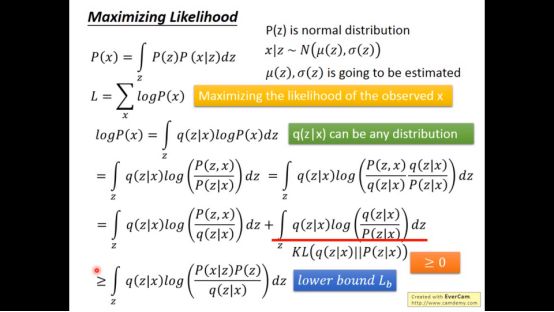 引入q(z|x)后可以得到以下的推导
