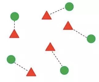 图:双视角CCA使图像(三角形)与其相应标签(圆形)之间的距离最小化(相等地,最大化相关性))