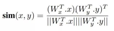 x和y分别是指文本和视觉数据的点。为了比较x和y,我们可以使用余弦相似度: