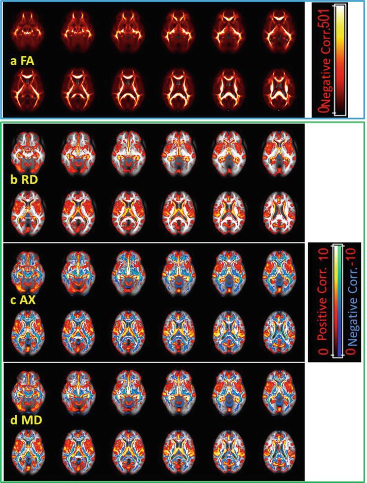 考虑到许多与年龄相关的风险,包括血管和神经炎症的增加,以及可能混淆基准功能磁共振参数图像,在相对较短的时间内揭示个体水平上的脑功能和微观结构变化尤其重要。细胞水平的轴索损伤和/或脱髓鞘以及弥散的中观水平物质异常聚集和结构/功能异常可在短的亚急性/急性期发生,而与年龄纵向变化相关的文献仅局限于我们以前的fMRI发现。纵向数据用来描述这些多参数,包括随机截距和个体间隔。性别交互作用对DTI分数各向异性(FA)和扩散系数均无显著影响。区间有效区域表现出FA的纵向变化,径向扩散系数(RD)/轴向扩散系数(AX)值与截面数据的老化结果相似。在DTI和fMRI指标之间,以及成像和神经认知数据(包括速度和记忆力)之间,发现了显著的相关性。我们的结果表明,年龄、性别和载脂蛋白E (APOE)基因型对结构和功能连接在短间隔和横断面范围内的显著和一致的影响,以及相关的神经认知功能。